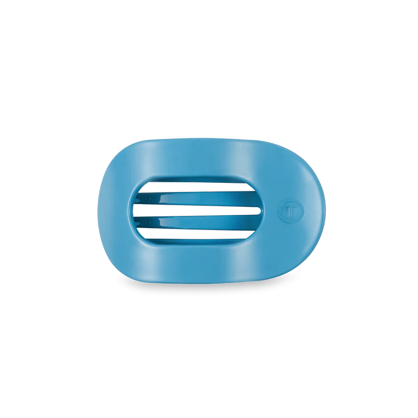 Lay flat and relax with the new TELETIES Summer Sky Flat Round Clip in Blue. This hair clip is designed to allow you to lay back flat, do yoga, or sit comfortably in a seat with a headrest, and it is made with the same material that is nearly unbreakable.