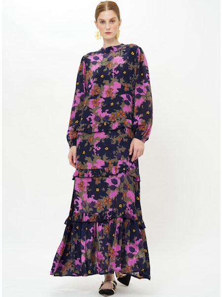 This Mock Neck Maxi dress features a stylish ruffle detail that adds a touch of elegance to its flowing silhouette. Designed for comfort and grace, it’s perfect for both casual and dressy occasions, offering a flattering fit that moves beautifully with you.