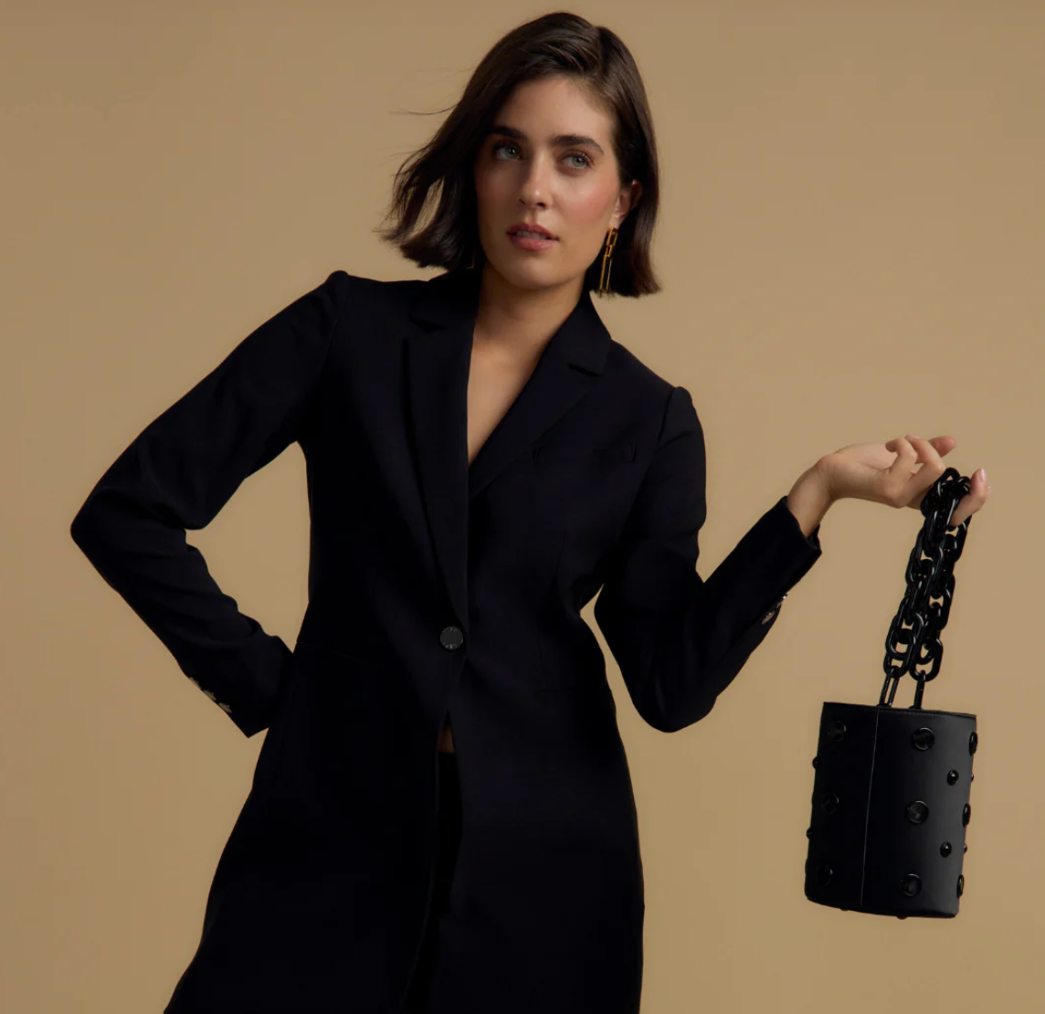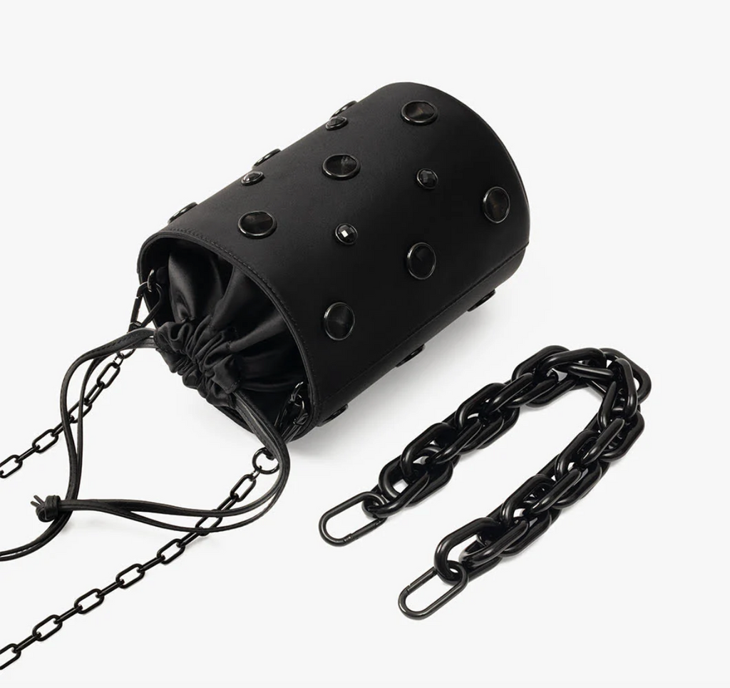 - Removable brass chain crossbody strap