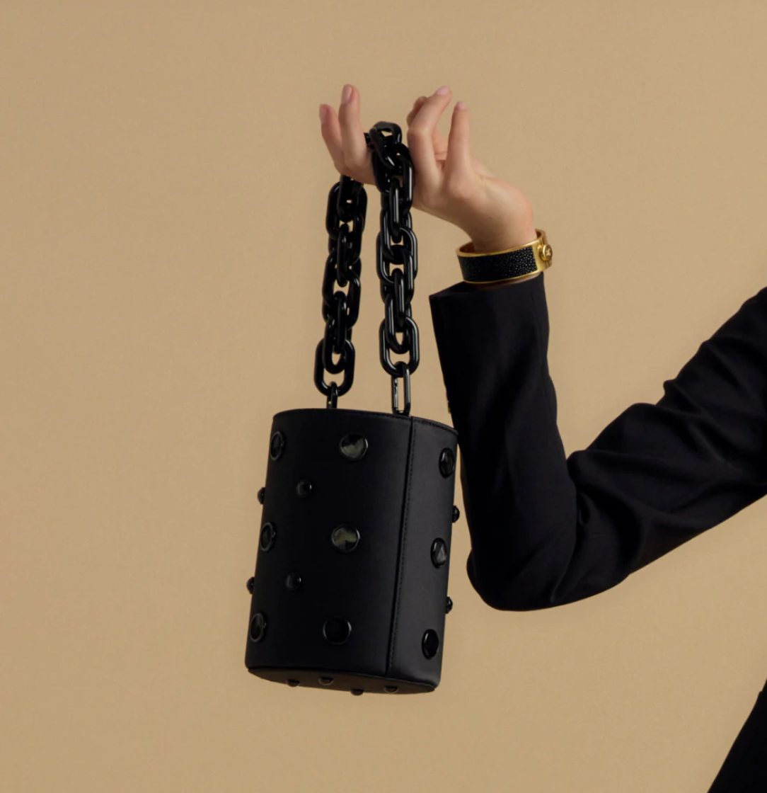 Sleek, sophisticated, and undeniably timeless, the Greenwich Bucket Bag in slate turkey feathers is the ultimate in understated luxury. The natural iridescence of the feathers brings subtle depth and shine, giving the piece a rich, dimensional finish that shifts beautifully in the light. With its classic bucket silhouette, this bag offers a seamless blend of structure and softness - ideal for both elevated everyday wear and refined evenings out. The monochromatic palette adds a versatile edge, allowing it to pair effortlessly with any wardrobe.