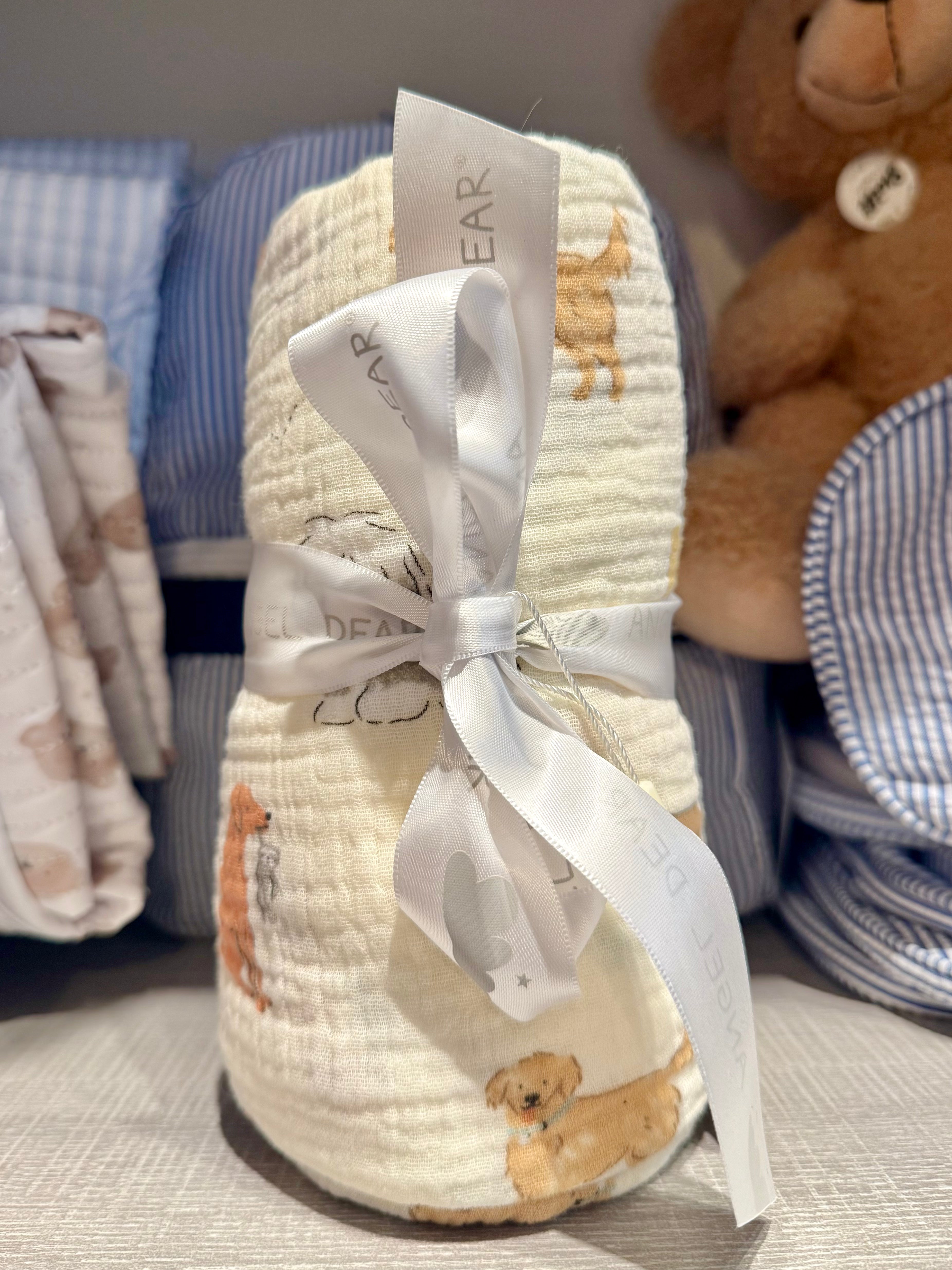 Wrap your little one in cozy comfort with this adorable swaddle blanket featuring playful dogs. Soft, breathable fabric keeps babies warm without overheating, while the charming dog design adds a sweet touch to nursery moments. Perfect for swaddling, tummy time, or snuggling. Easy to care for and gentle on delicate skin.