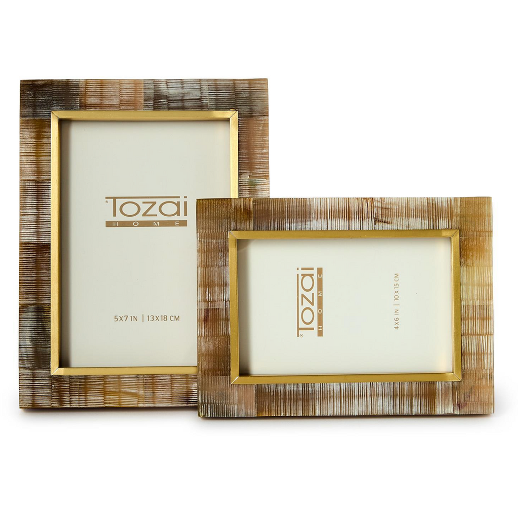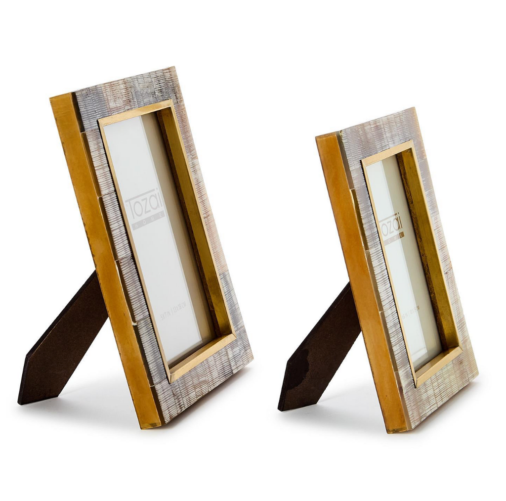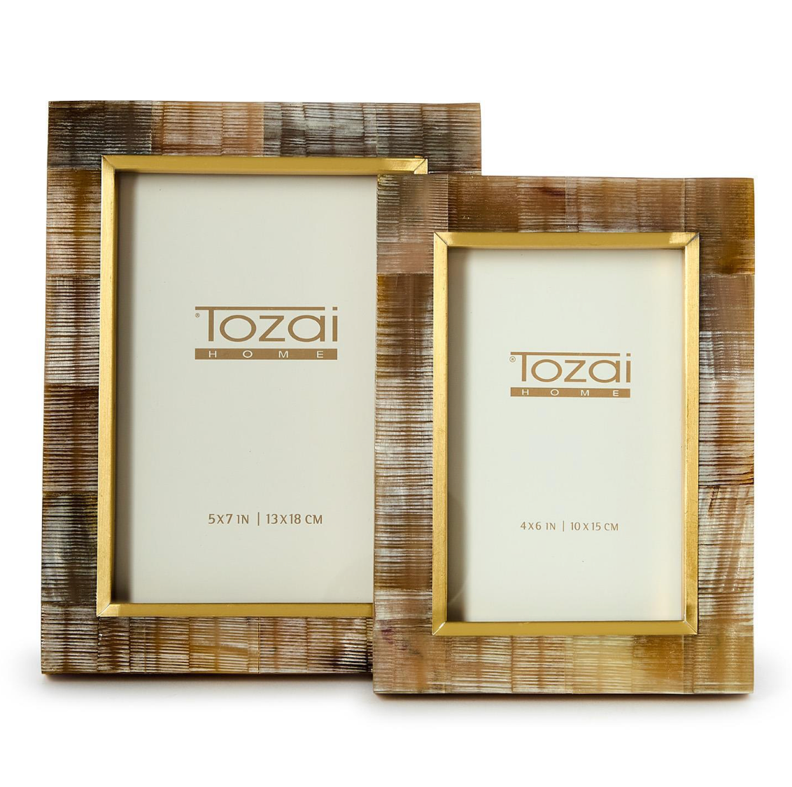 Capture cherished moments in style with the Well Defined Natural Chiseled Horn Photo Frames. Crafted from a blend of MDF, horn, bone, glass, and brass, these frames exude natural elegance. Perfect for showcasing your favorite 4" x 6" or 5" x 7" photos, they can stand horizontally or vertically, adding versatility to your dècor. Handmade with precision, these frames are a unique addition to any space.