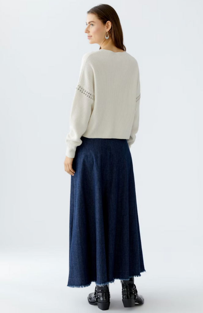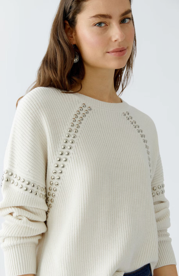 Pullover with placed metal rivets on the sleeve and on the indicated raglan line