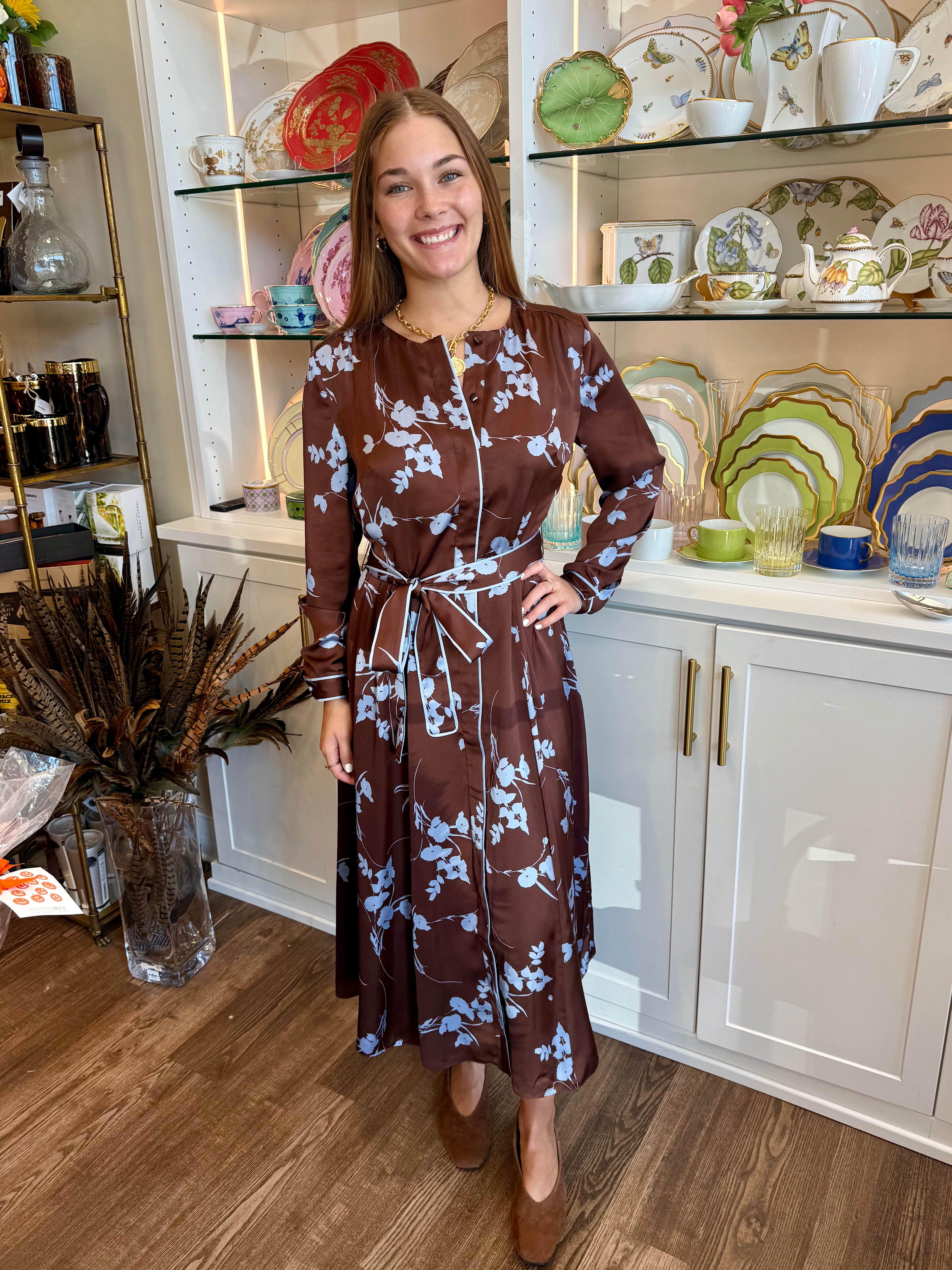 The Helene Midi Dress carries itself with quiet beauty—flowing with grace, framed in subtle contrast, and finished with delicate buttons you won’t forget. A dress for open-air dinners and moments that linger.