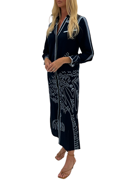 The Kathryn Caftan features a timeless v neck and elegant collar, perfect for any occasion. With an optional tie, this caftan offers versatility and style in one. Elevate your wardrobe with this must-have piece.