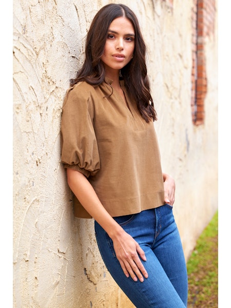 The Marcie Corduroy Popover Top features soft corduroy fabric and charming puff sleeves for a stylish, comfortable fit. Its lightweight design makes it perfect for layering or wearing alone, adding a cozy yet fashionable touch to any outfit.
