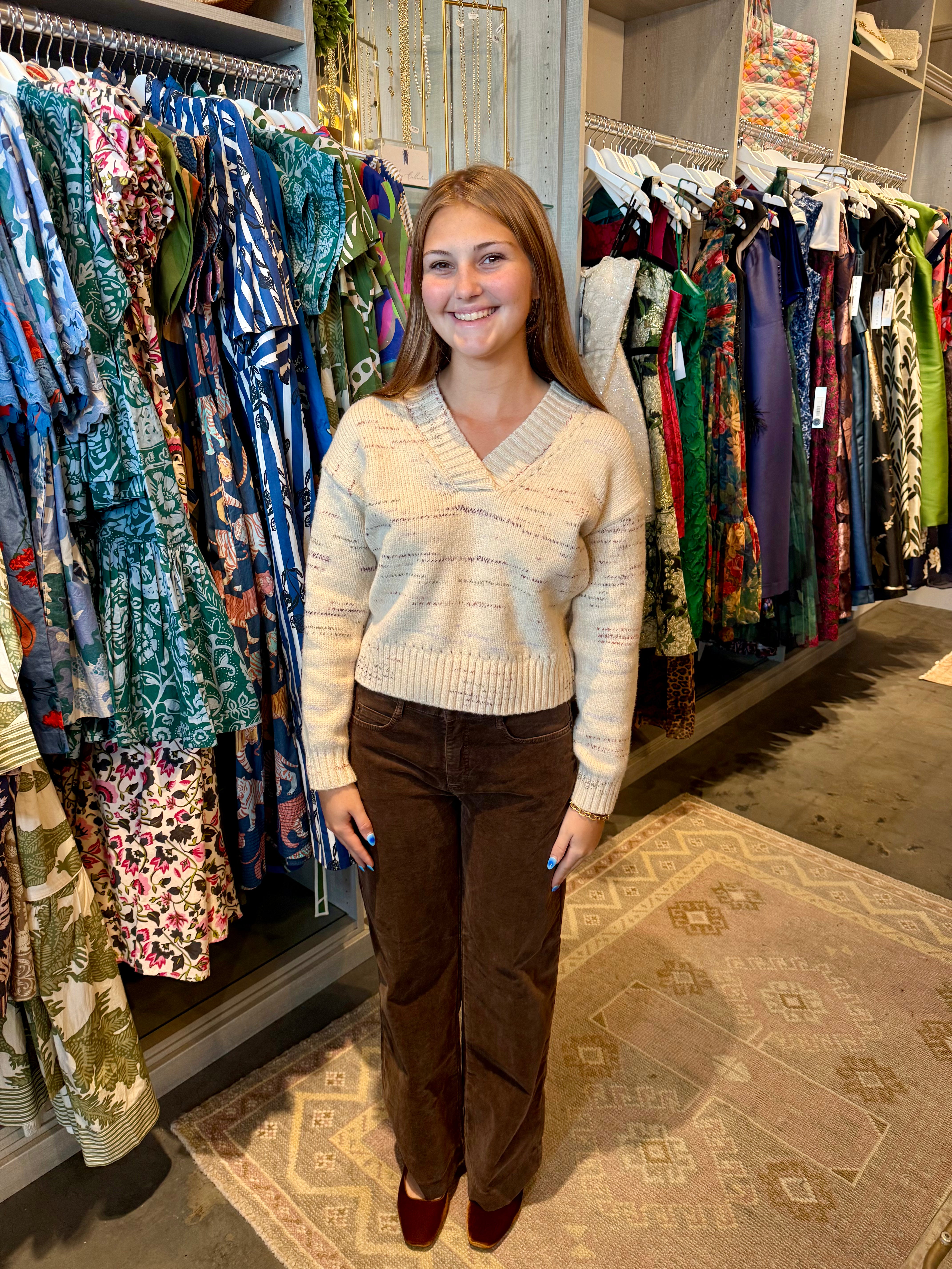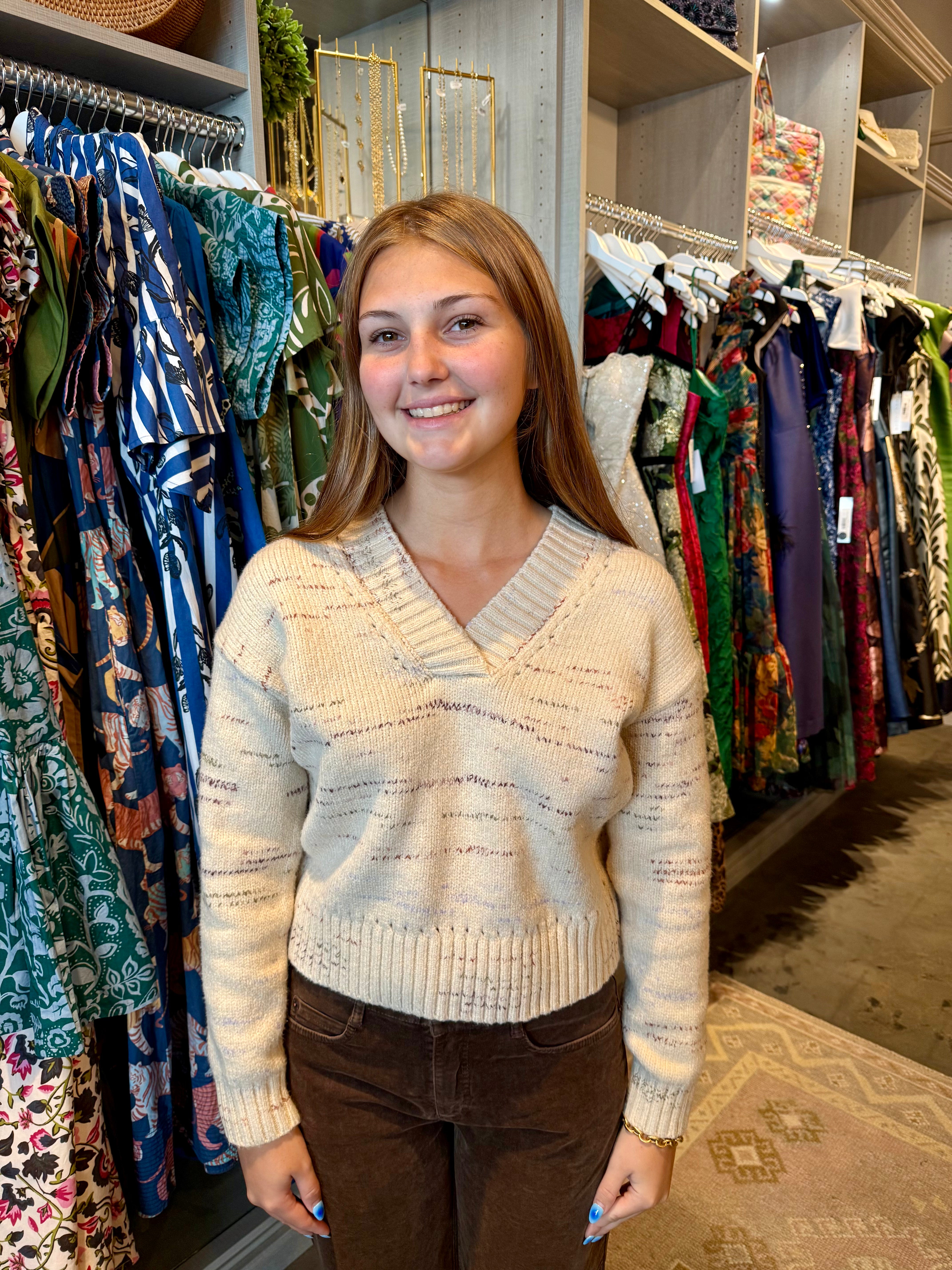 Stay cozy and stylish with this Oversized V-Neck Sweater. Designed for a relaxed fit, it offers comfort without sacrificing fashion. The deep V-neck adds a flattering touch, making it easy to layer or wear on its own. Perfect for casual days or cool evenings, this sweater combines softness and versatility to keep you comfortable all season.