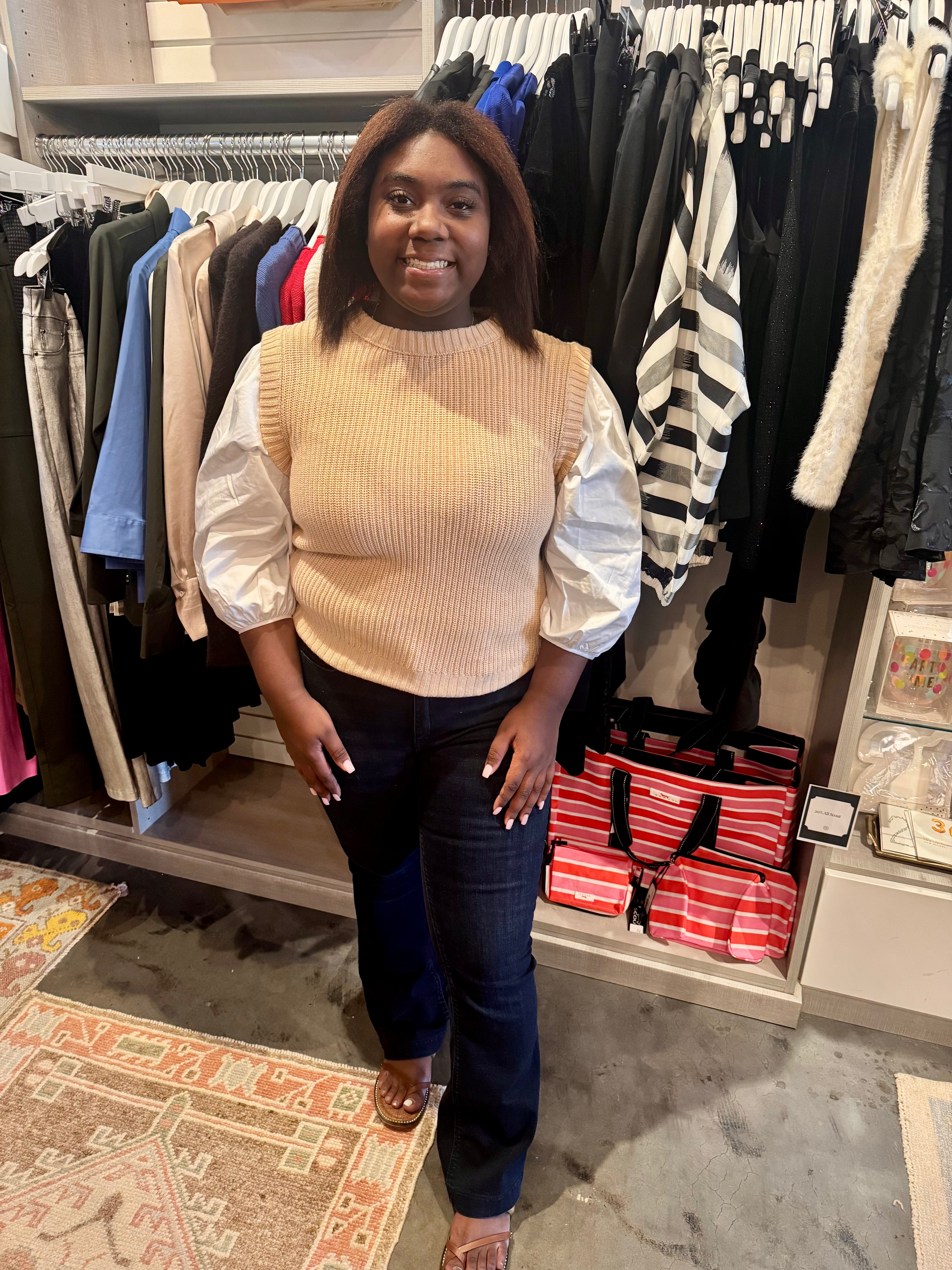 The Latte Phoebe Mixed Media Shirt combines different textures and fabrics to create a unique and stylish look. Its versatile design pairs well with casual or dressy outfits, offering comfort and a distinctive fashion statement. Perfect for those who appreciate subtle details and a modern twist on a classic shirt.