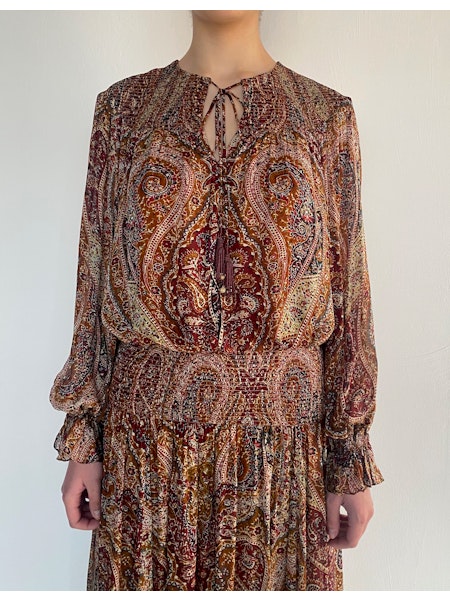 Elevate your wardrobe with the Smocked Detail Maxi Dress in rich burgundy. Crafted from lightweight viscose chiffon, this maxi dress features elegant flat chiffon fabric and delicate smocked detailing for a comfortable yet flattering fit. Its flowing silhouette is perfect for both casual outings and special occasions, offering effortless style and a graceful feel.