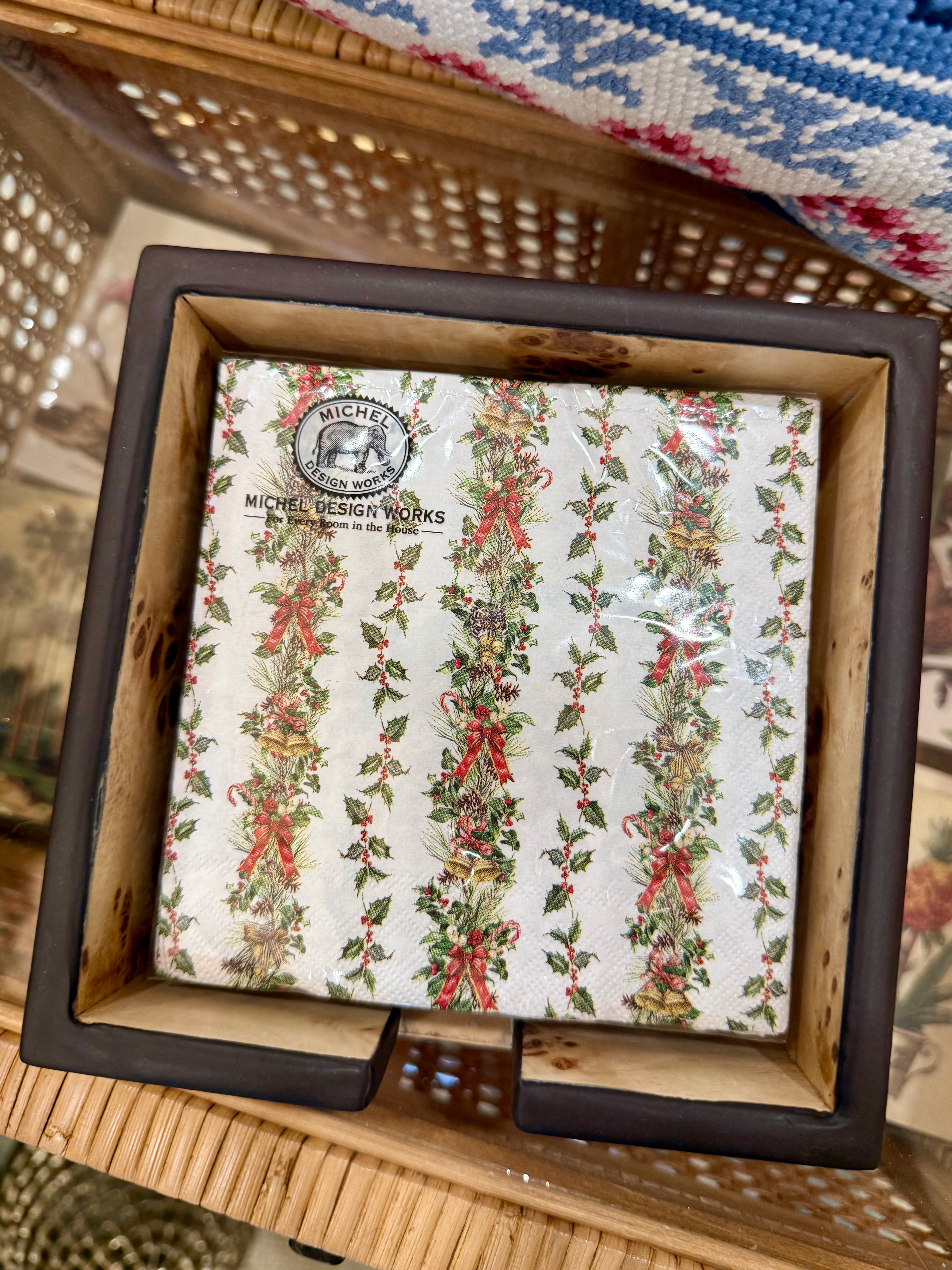 Elevate your holiday entertaining with these charming cocktail napkins featuring a festive garland design. Perfect for seasonal gatherings, dinner parties, and festive celebrations, these napkins add an elegant touch to any table setting. The holiday-inspired pattern brings warmth and sophistication to your drinks and appetizers. Ideal for hosts who appreciate thoughtful details that make their events memorable. Stock up for the season and impress your guests with style.
