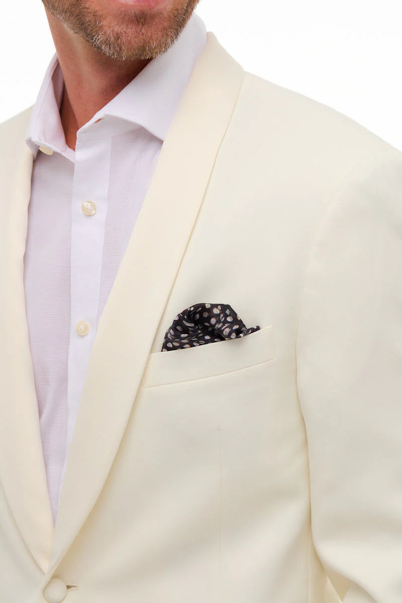 The San Salvador Silk Pocket Square offers the perfect balance of boldness and refinement. Reversing from large to small dot guinea feathers, this piece features a striking dot pattern that remains neutral yet eye-catching. The print layout, inspired by real feather panels, showcases the natural beauty of the feathers in a sophisticated, modern way. Crafted from 100% silk, this pocket square adds a touch of luxury and versatility to any ensemble, whether worn for formal occasions or casual outings.
