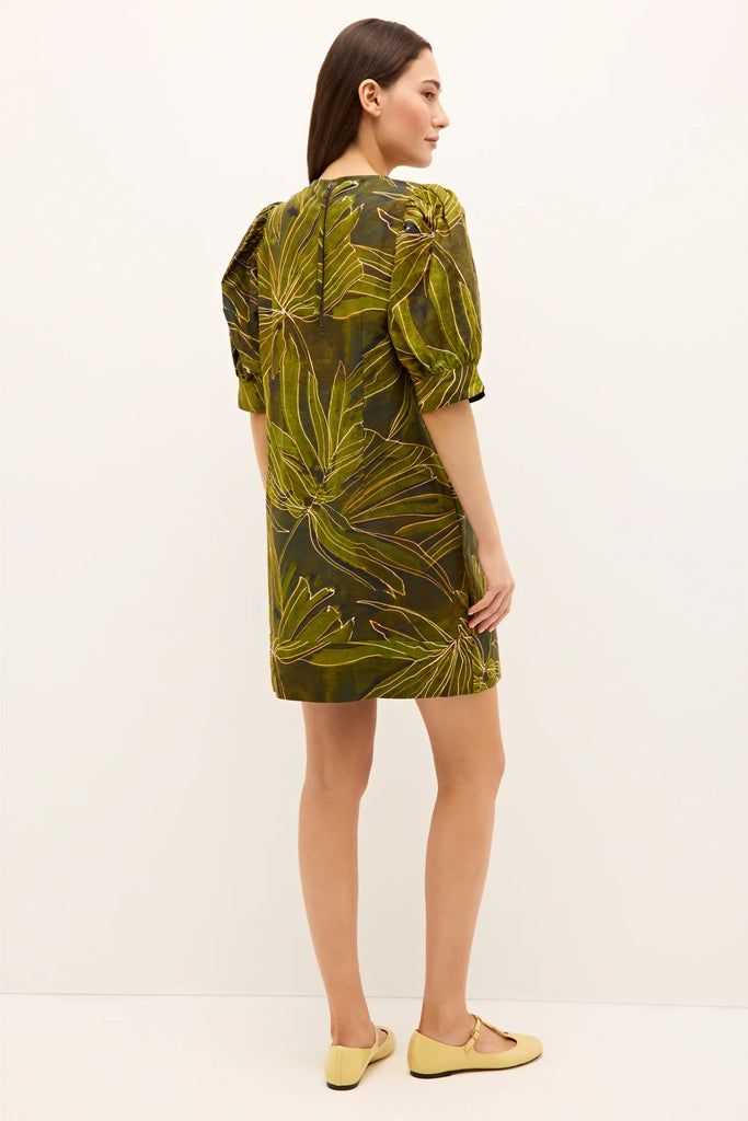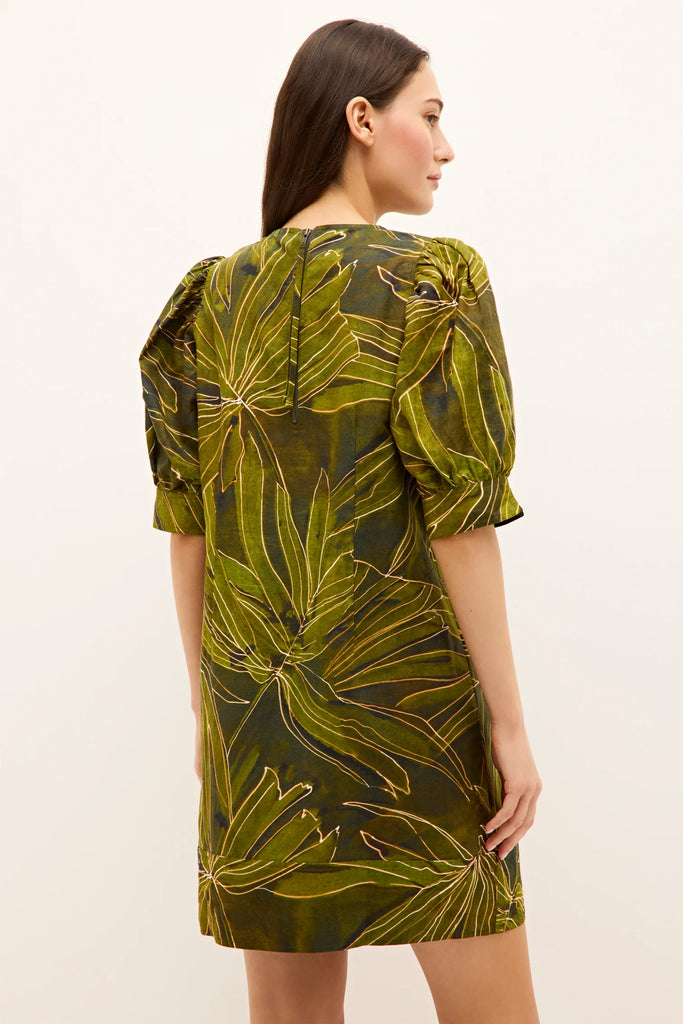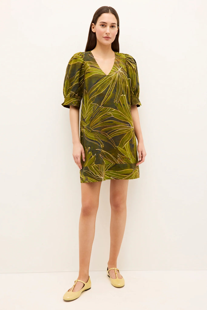 Hello, 30-second outfit: With puff sleeves, a perfect v-neck, and a bold new botanical print in deep olive green, this standout mini dress is destined to continue its best-selling run.