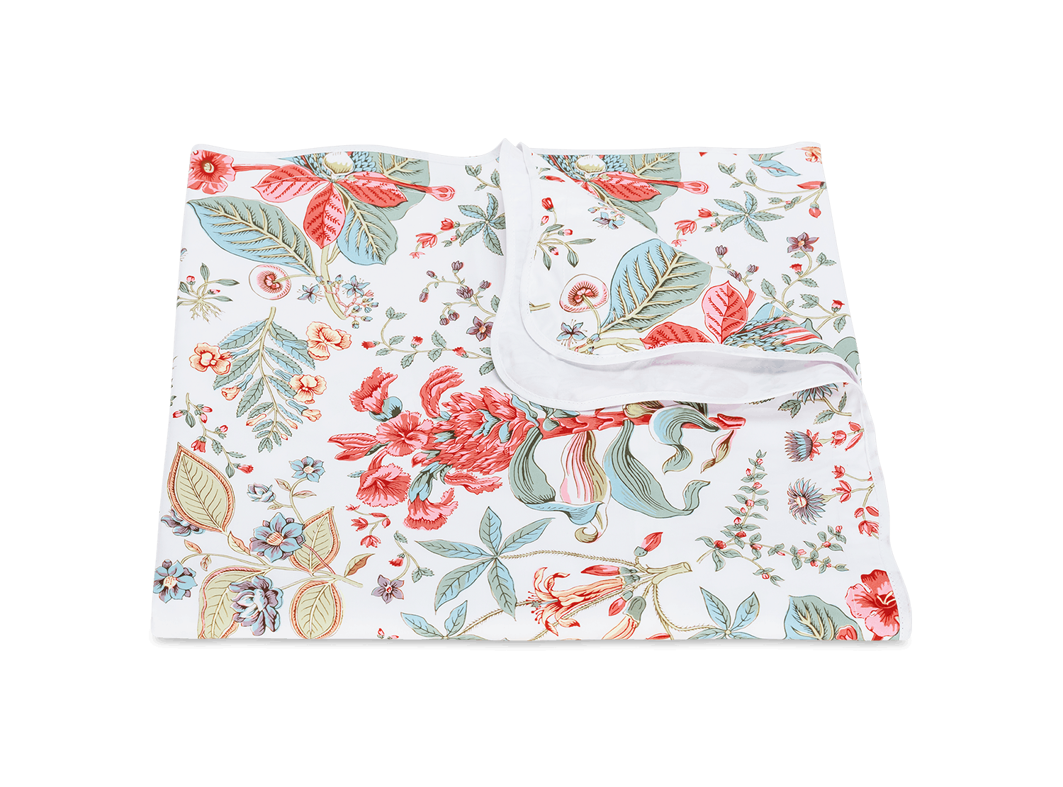 Based on an 18th century design from Schumacher’s archive, Pomegranate reimagines a timeless botanical in luscious colorways. This vibrant style is printed in Italy on 500 thread count Luca Egyptian cotton percale and finished with the subtlest scalloped edge and white tape—a perfect pairing of Schumacher artistry and Matouk craftsmanship.