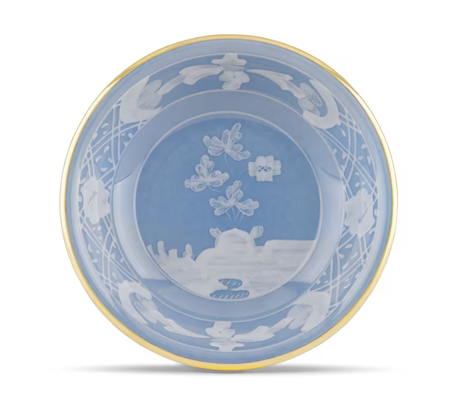Precious gold threading enhances the lines of the idea shape for an instantly recognizable design that evokes oriental atmospheres. Oriente Italiano is one of the Manifattura's flagship collections. Made in Italy and savoir faire of excellence, it is available in a complete assortment for tableware, tea, coffee and home accessories.