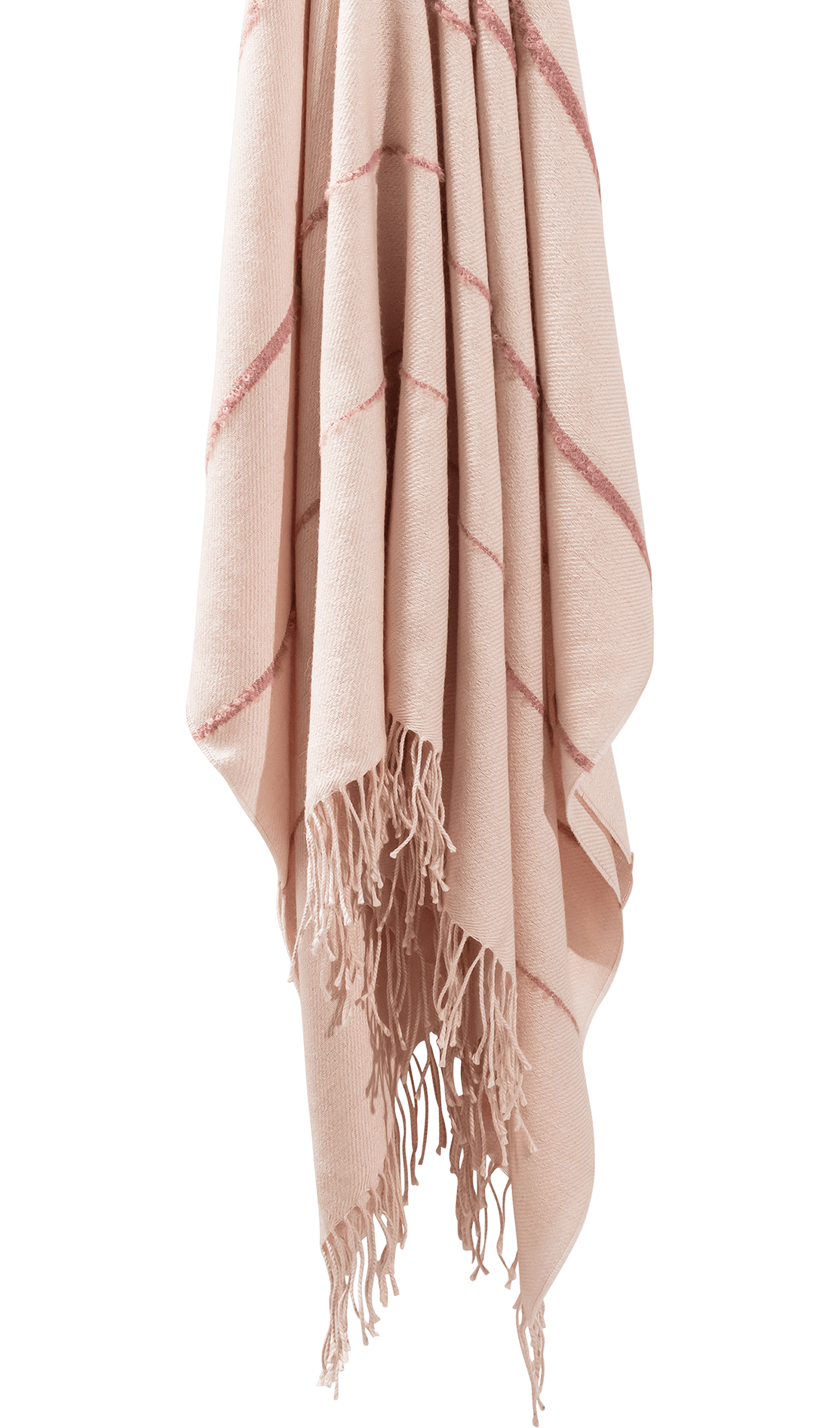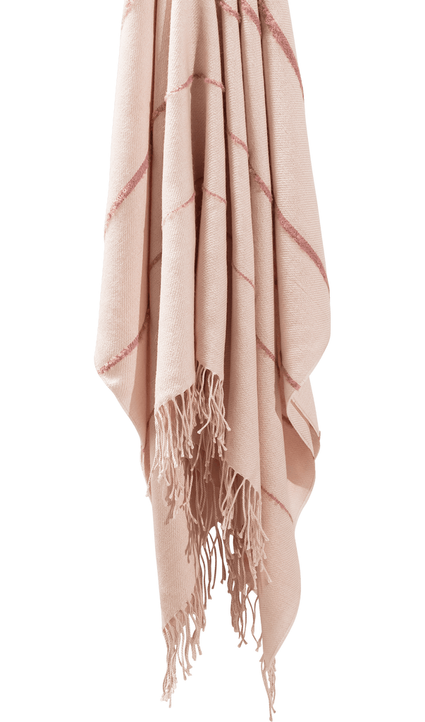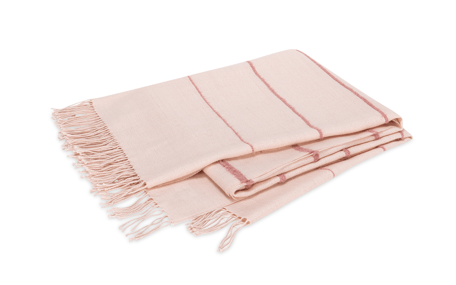 A luxe travel wrap, the Amelia Stripe throw is a versatile piece to wear on airplanes or anywhere you need an extra layer of warmth. This baby alpaca style features bouclé striping in a basketweave pattern and fringe detailing along its edge.