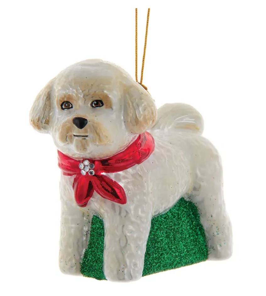 Noble Gems™ is a collection of beautiful glass ornaments celebrating different occasions, meant to last year after year so that you could preserve and reflect upon your memories each holiday season. Each ornament is an intricate work of art that is sure to be treasured. This Noble Gems™ Bichon Frise ornament from Kurt Adler is a charming addition to any holiday décor or Christmas tree. This ornament features a Bichon Frise wearing a festive red scarf with rhinestone accents.