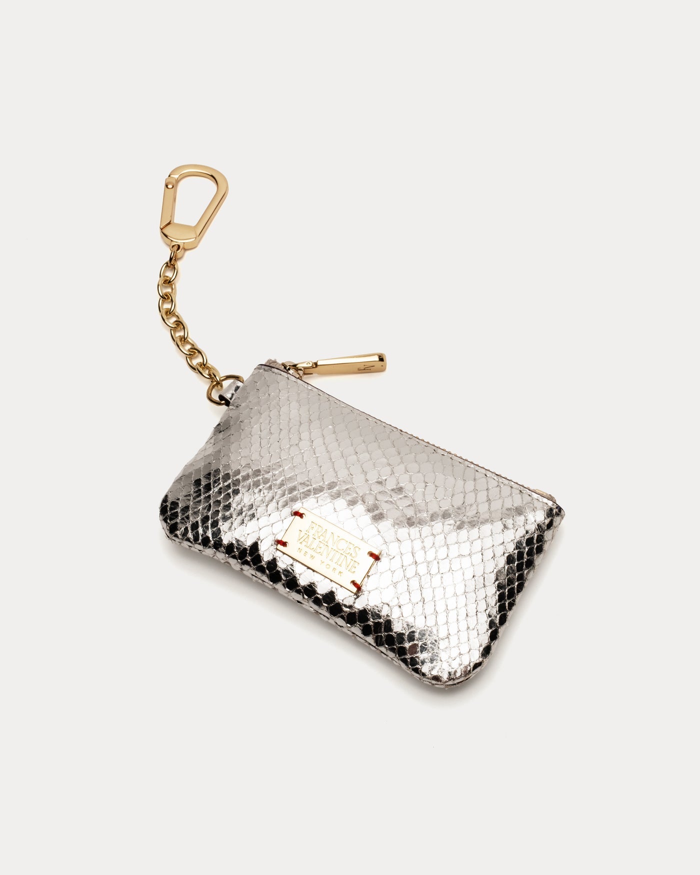 Say hello to your favorite accessory: the Bitsy Key Pouch. Made from stylish metallic snakeskin, this compact marvel features a secure zip closure and a handy key chain attachment. Perfect for keeping your essentials close while adding a dash of flair to your day.