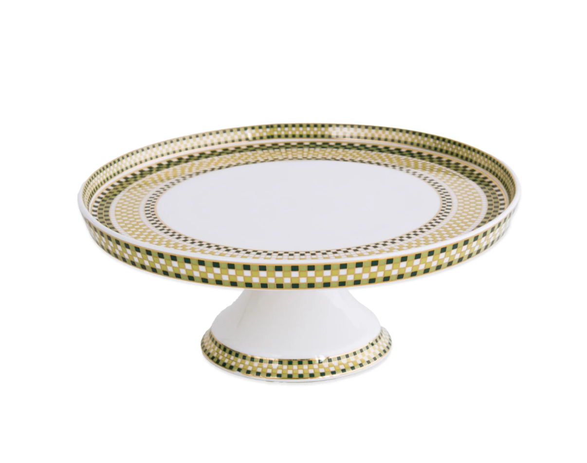 A centerpiece of elegance. The CERAMIC Ravenna Pedestal Cake Plate in green & gold is crafted in durable ceramic with a lustrous glaze and gleaming gold detailing. Perfect for presenting cakes, pastries, or savory bites, it adds refined sophistication to dessert tables and celebrations.