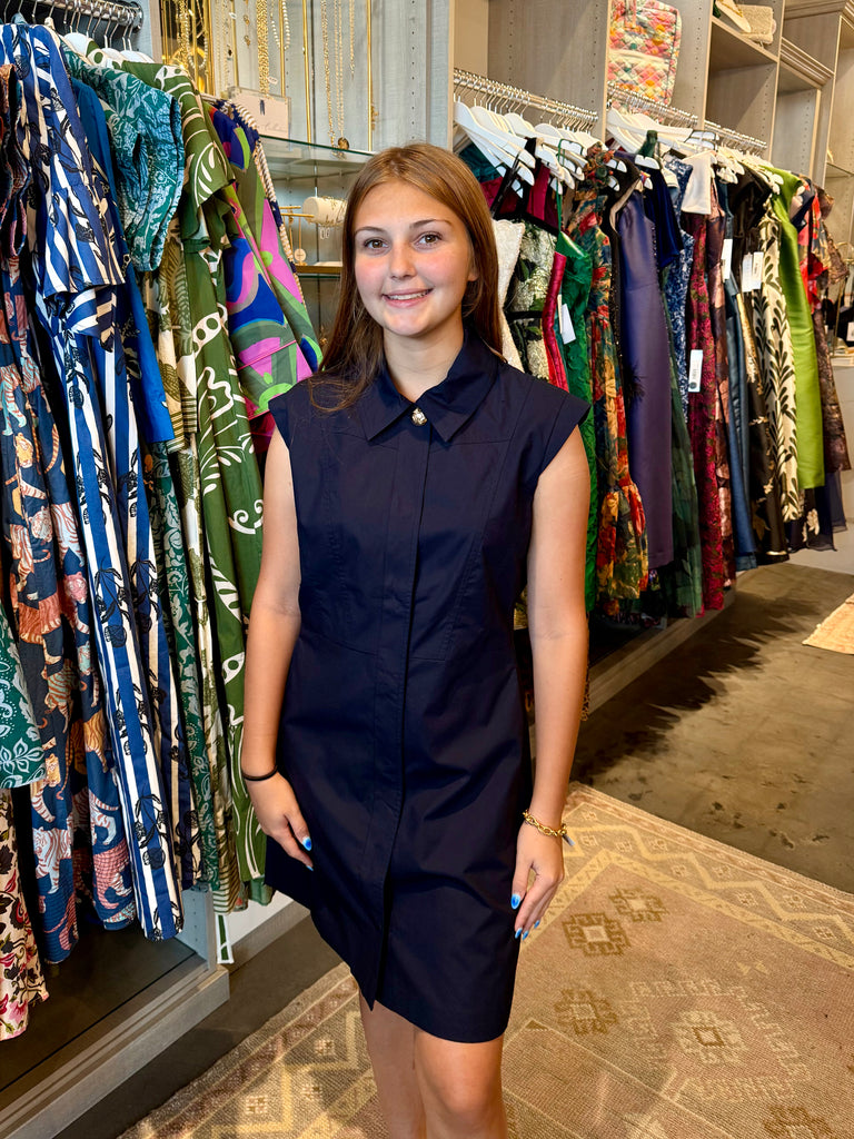 The Chris Sleeveless Dress features lightweight poplin fabric that offers a crisp, breathable feel, perfect for warm weather. Its sleeveless design allows for easy movement and comfortable wear throughout the day. This dress combines simplicity and style, making it an ideal choice for casual outings or layered looks.