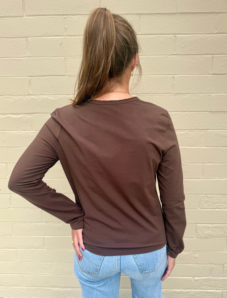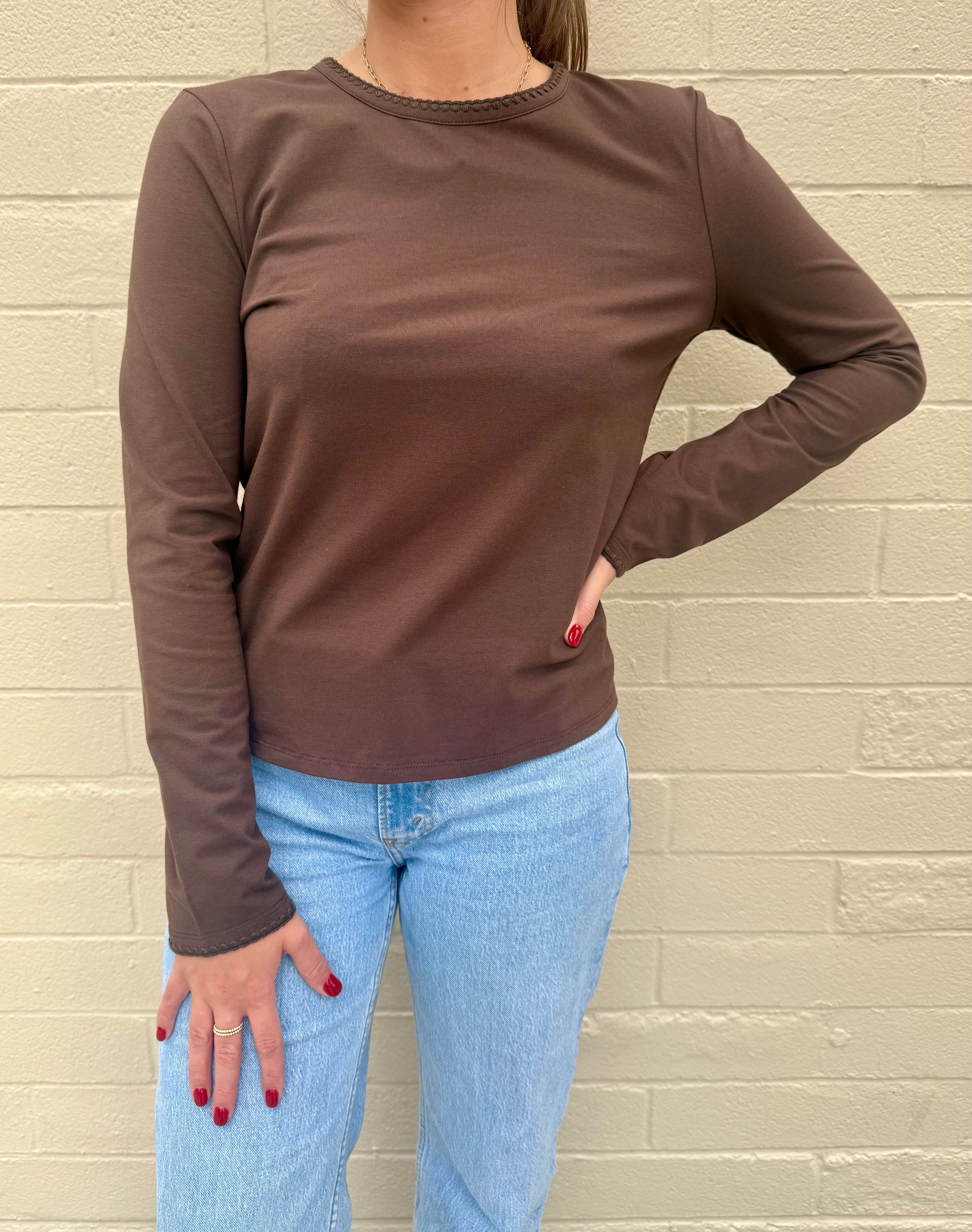 The Dylan long sleeve is a refined essential—crafted in breathable cotton jersey with delicate stitched details that set it apart. It’s the kind of piece you’ll wear on repeat, layered or on its own.