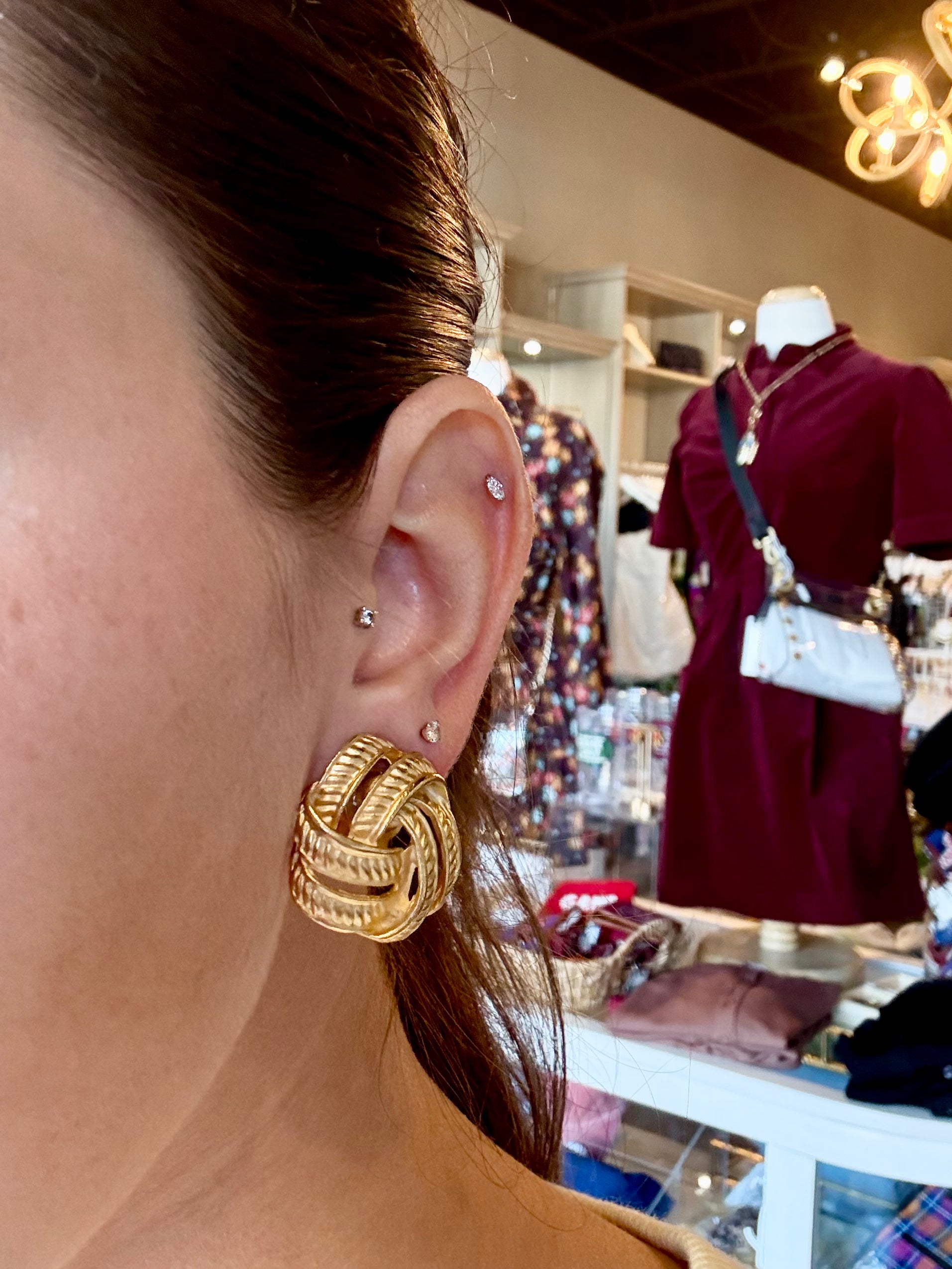 These gold vintage clip-on earrings offer timeless elegance without the need for pierced ears. Their classic design adds a sophisticated touch to any outfit, making them perfect for both everyday wear and special occasions. Comfortable and easy to wear, they bring vintage charm to your accessory collection.
