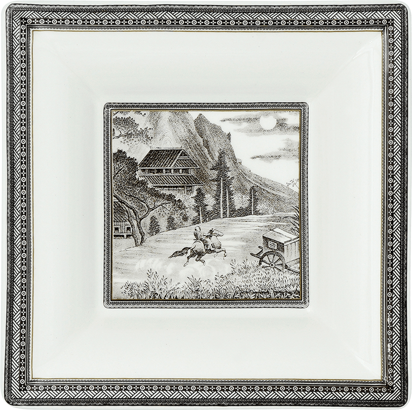 The Le Cavalier Des Steppes Large Square Candy Tray measures 6.69 inches in both length and width, offering a spacious and elegant surface for serving your favorite sweets. Its square shape provides a modern touch, making it perfect for entertaining guests or adding a refined accent to your dessert table.