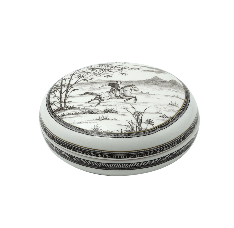 This Le Cavalier Des Steppes Round Candy Box measures 4.44 inches in diameter and 1.94 inches in height, making it a compact and elegant container perfect for storing or gifting sweets. Its size is ideal for keeping candies fresh while adding a touch of sophistication to any display or gift presentation.