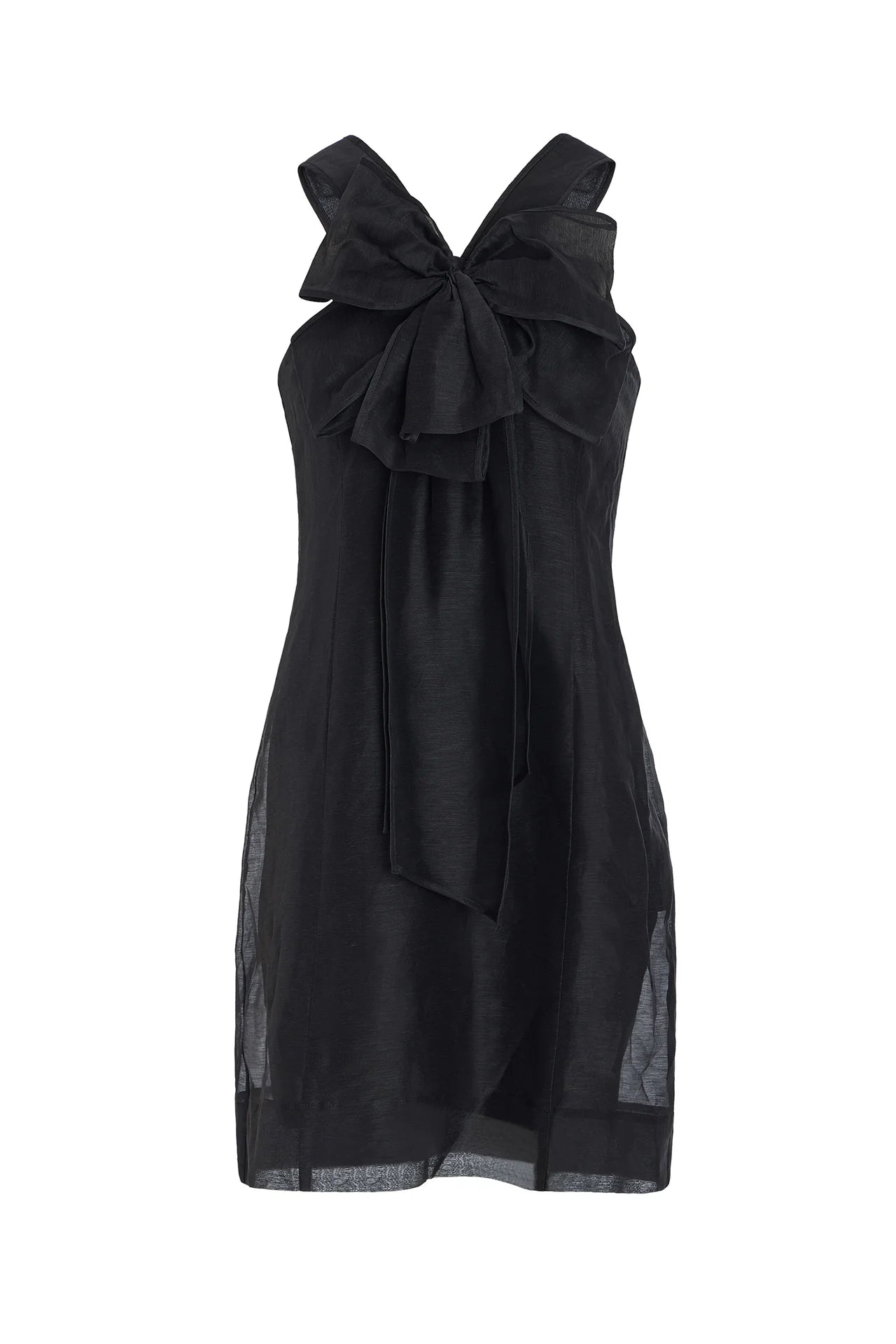 The Lila mini in classic black is a proper party dress with an oversized bow at the neck that adds playfulness and sophistication to a timeless LBD.