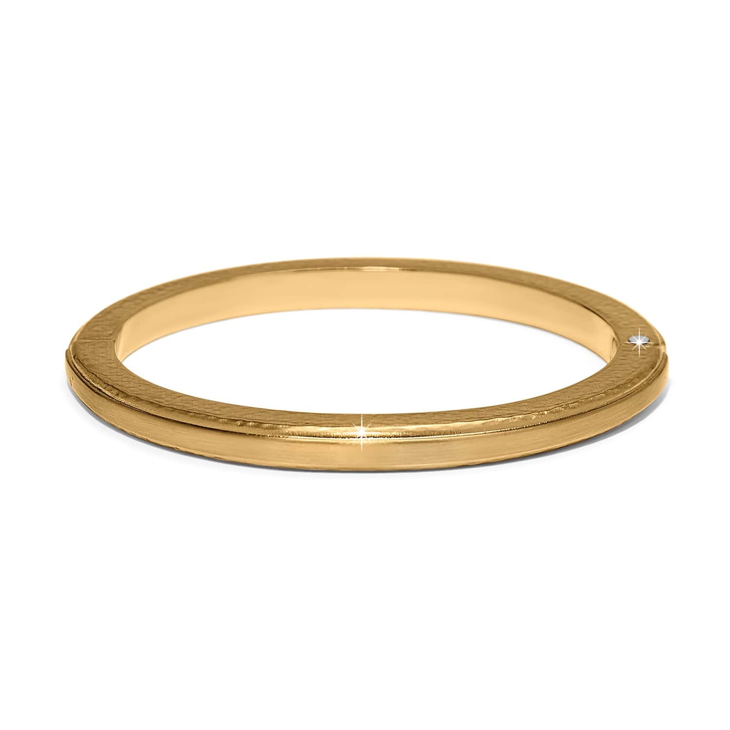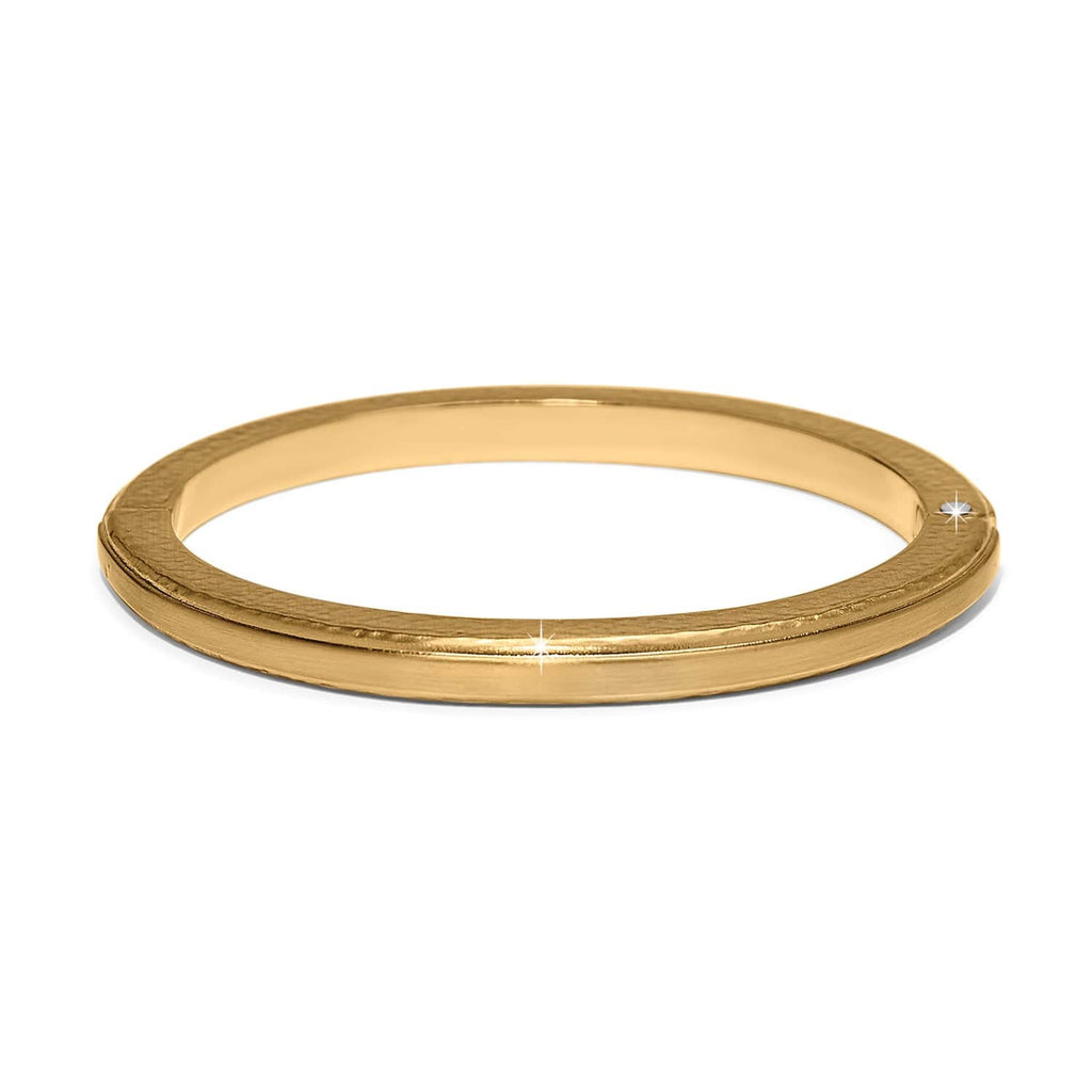 Inspired by the orbit or path the earth takes around the sun, a stunning golden bangle with stones and a brushed finish is the perfect addition to your bracelet stacks.