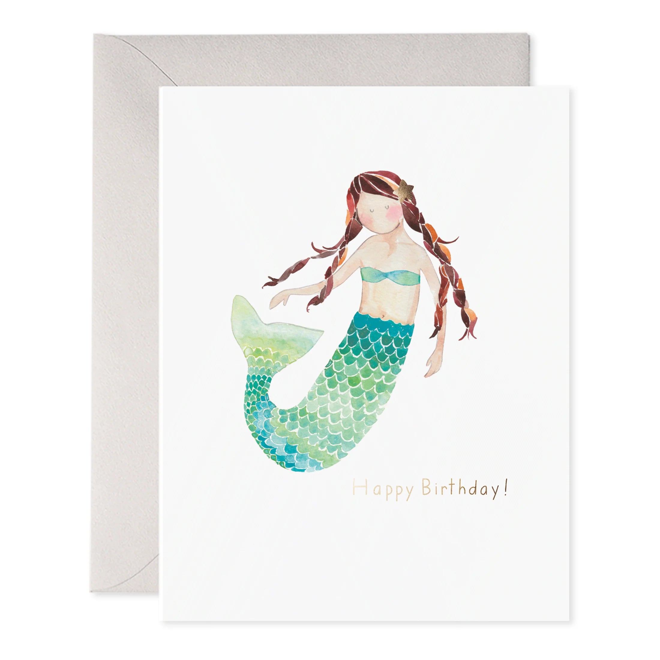 Send more love with these greeting cards, featuring mermaids, charming illustrations and clever words. Each E. Frances card starts as a handcrafted watercolor painting, printed on luxurious paper with brilliant colors and foil accents, plus bonus artwork on the back of every card. Proudly made in the USA with care and love.