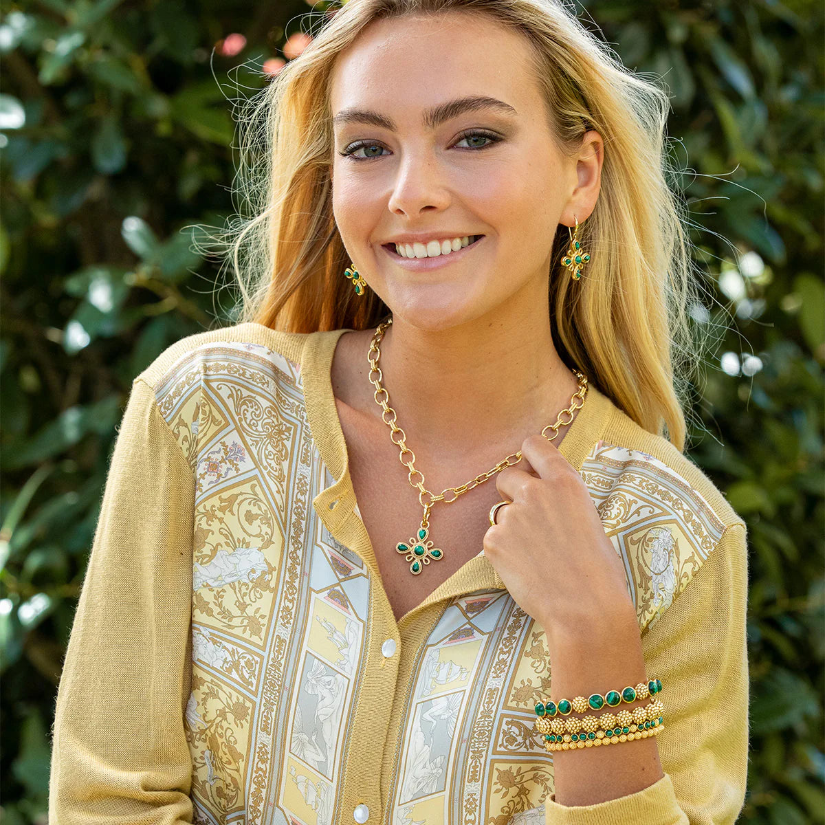 Malachite, 18K Gold over Brass with Anti-Tarnish Coating