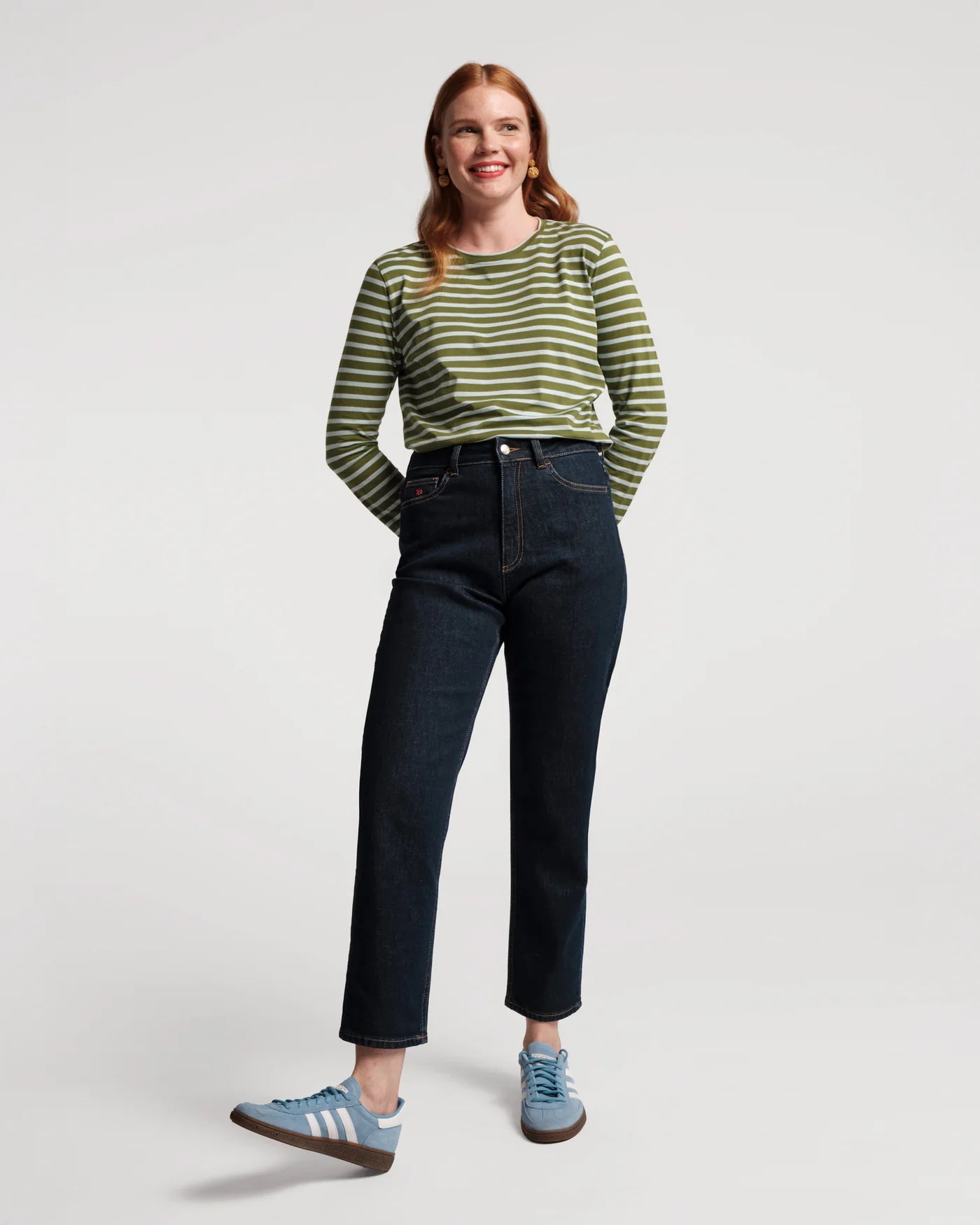 A fan-favorite Long Sleeve Striped Tee Shirt is constructed in soft pima cotton, and is a great layering piece for chillier days or paired on its own with jeans for that effortlessly chic look.