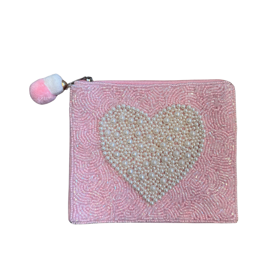 Pearl Heart Beaded Coin Pouch
