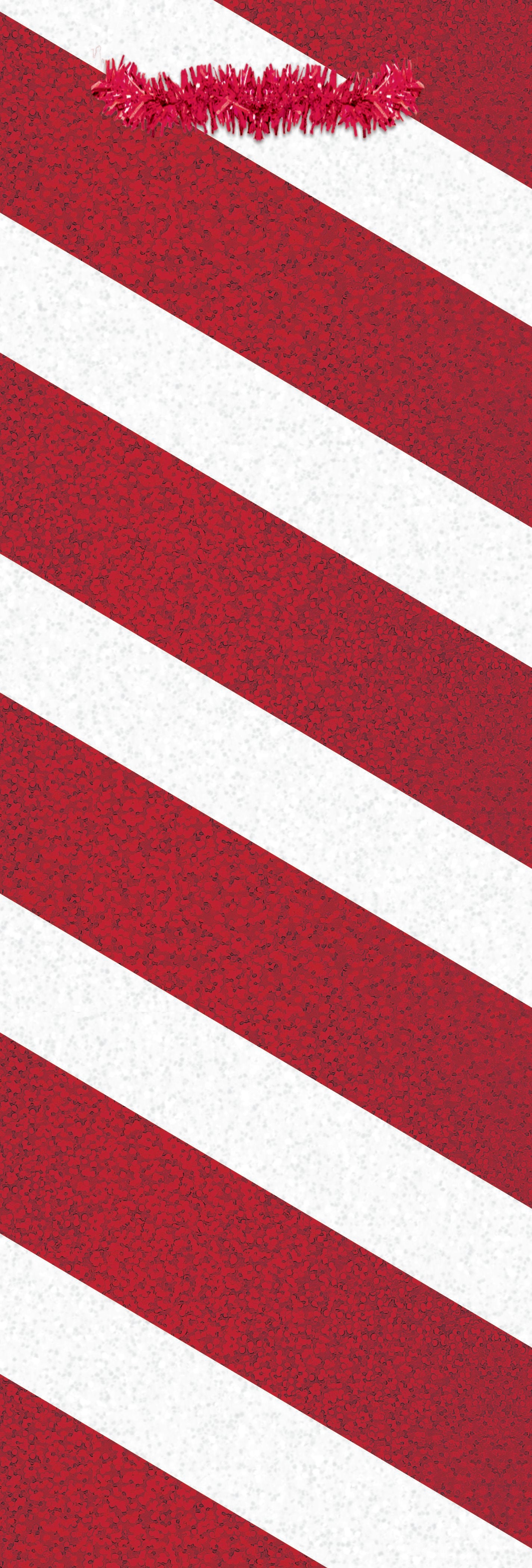 Celebrate the season with this festive bottle tote bag, perfect for spreading holiday cheer! Featuring striking red and white diagonal stripes adorned with diffraction foil for an eye-catching shimmer, this bag is finished with a fun red tinselhandle. Ideal for gifting wine, champagne, or sparkling cider, this tote adds a playful yet elegant touch to any holiday celebration, making your present stand out with style and charm.