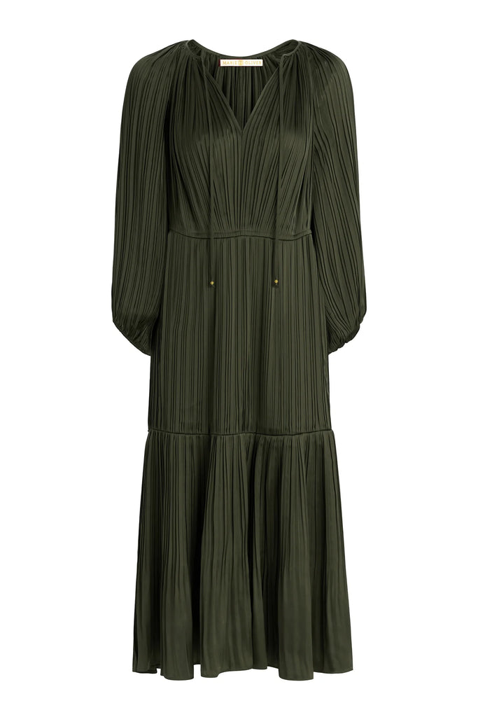 Breeze into lunch dates with the girls or add to the artistic elegance at a gallery opening with the sumptuously sophisticated Perrin dress. Pleated and tiered details cascade down its length, while a drawstring waist allows for a more personalized fit. A dramatic color-soaked Rosin hue adds to the autumnal appeal, and you’ll find yourself slipping into this supersoft and drapey highlight of the season week after week.