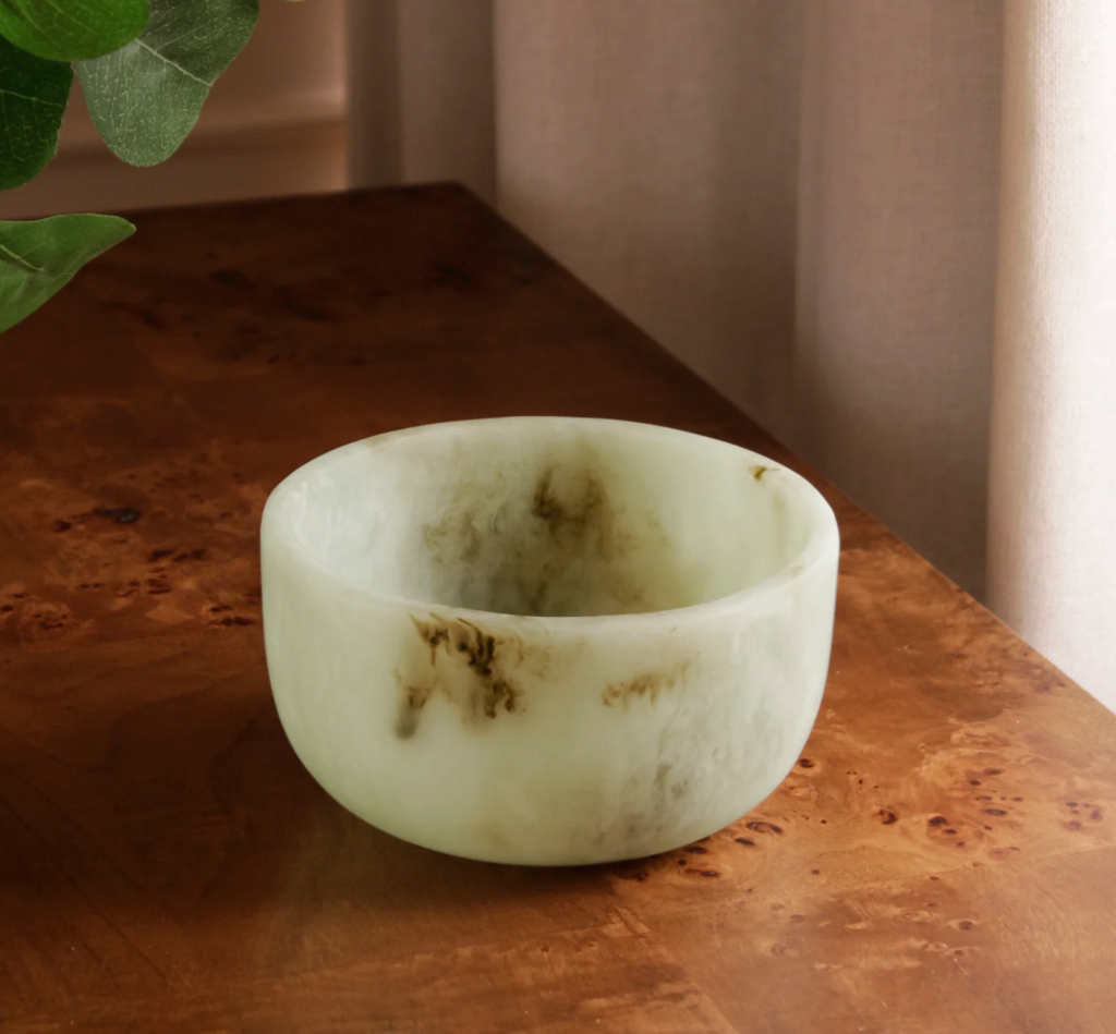 The RESIN Giada Small Bowl (Jade Swirl) is perfect for serving nuts, dips and small bites, indoors or outdoors. Makes a great gift, and a great story.
