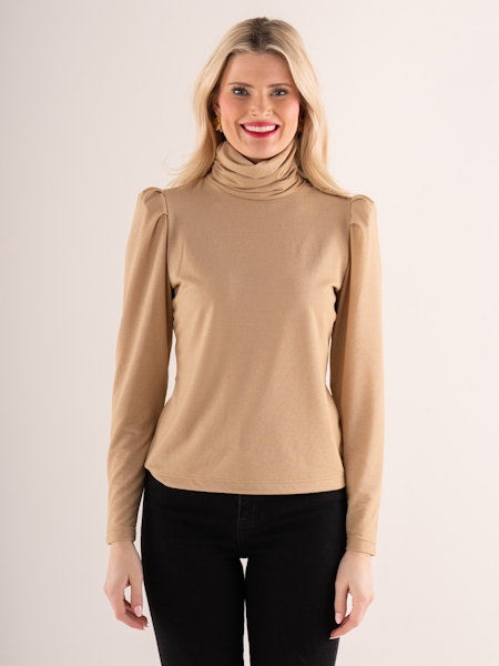 The Tessa Turtleneck is a wardrobe essential reimagined with modern detail. Crafted with a relaxed neck that softly scrunches for a fresh take on the classic silhouette, this piece balances ease with elevated style. Subtle puffed shoulders and sleeves finished with signature gold buttons add a feminine touch, while the tailored fit ensures effortless layering. Designed for versatility, the Tessa is the perfect go-to for polished style through the colder seasons and beyond.