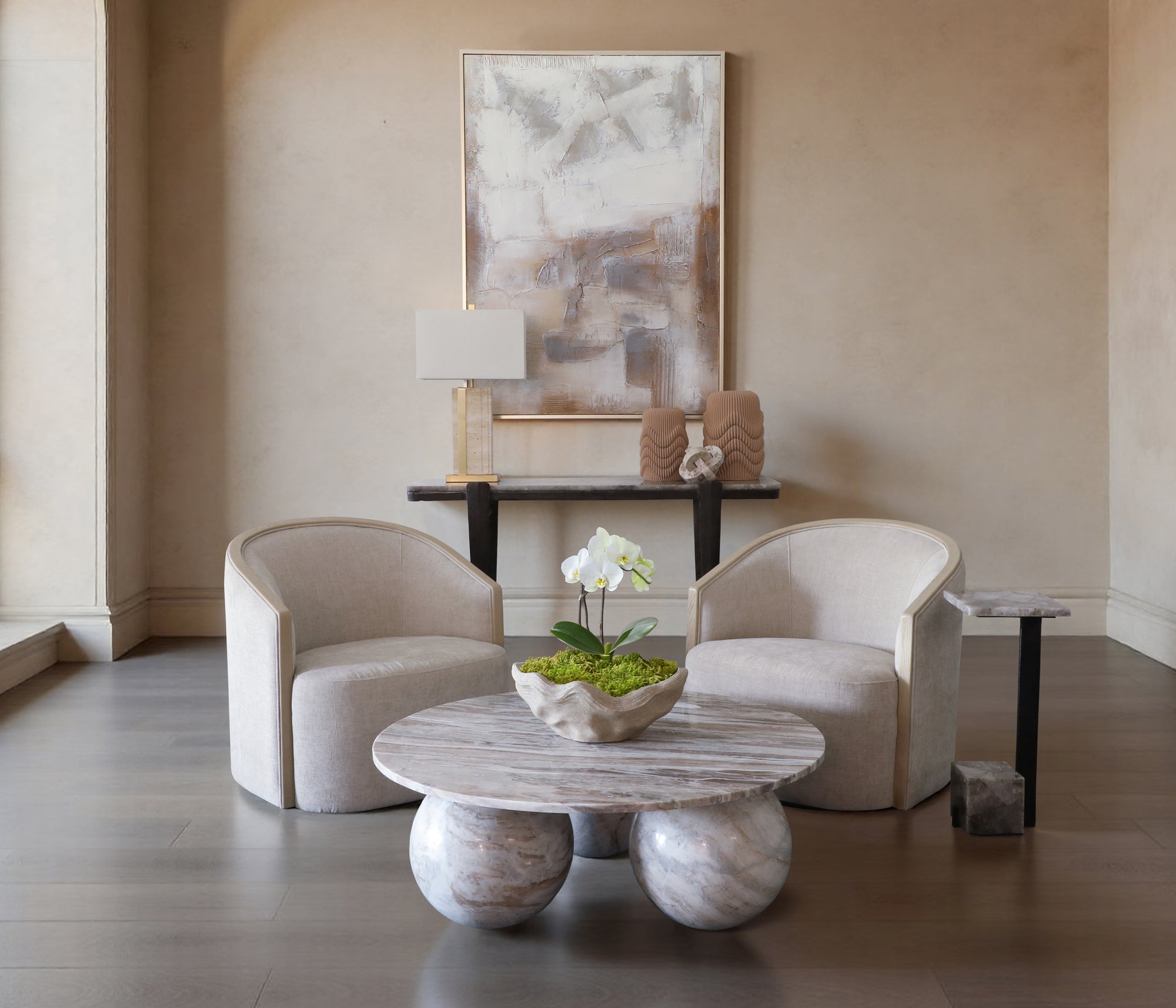 The Foster Fabric & Wood Swivel Chair combines comfort with contemporary style. Featuring a plush fabric seat paired with natural wood accents, this swivel chair rotates for easy movement and accessibility. The sturdy wooden frame provides lasting durability, while the soft upholstery offers a cozy place to sit. Perfect for home offices, living rooms, or bedrooms, this versatile chair adapts to any décor. Its smooth swivel mechanism makes it ideal for workspaces where mobility matters, and the neutral design complements both modern and traditional interiors.
