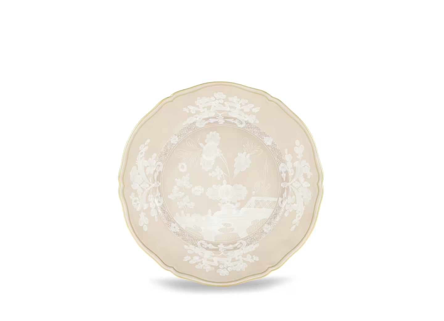 Porcelain charger plate with decoration and gold threading. Oriente Italiano Collection.