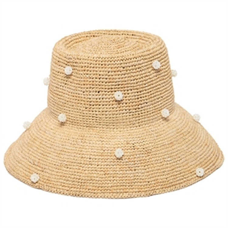 Elevate your warm-weather wardrobe with the Perla Crochet Raffia Hat, a charming accessory that combines natural texture with delicate pearl cluster embellishments. Hand-crafted from breathable raffia, this hat offers sun protection while maintaining an effortlessly chic aesthetic. The intricate crochet detailing paired with lustrous pearl accents creates a sophisticated look perfect for beach days, garden parties, or casual outings. Lightweight and comfortable, it's an ideal companion for any season.