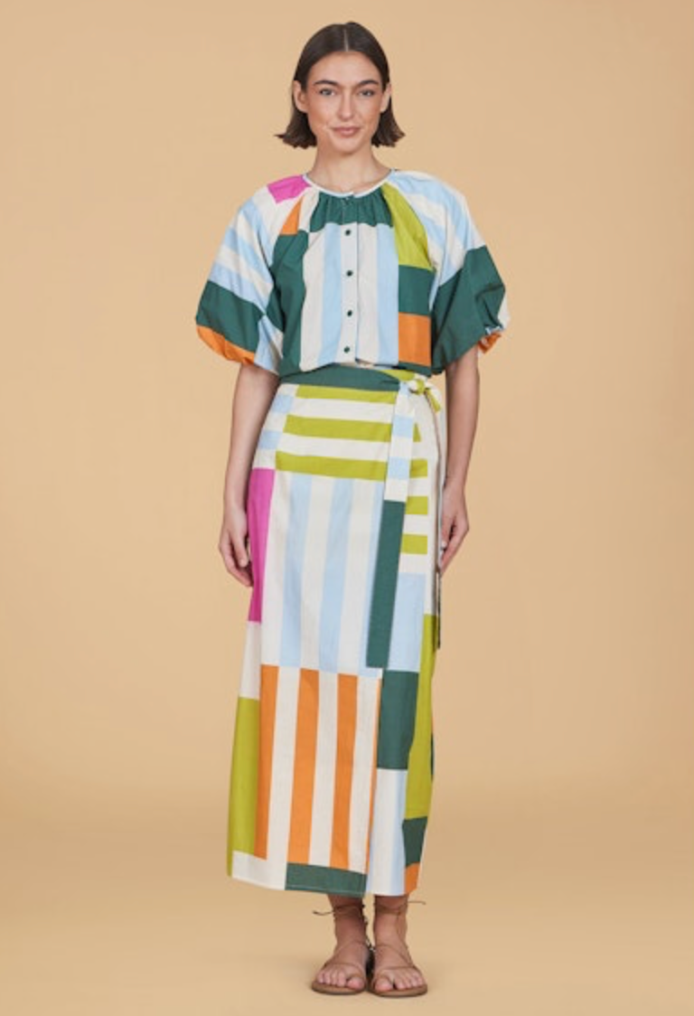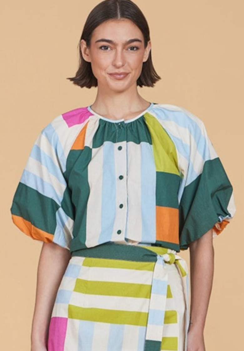 An easygoing silhouette with statement appeal, the Frida Top features a relaxed fit, open collar neckline, and voluminous short sleeves. Pair it with matching separates or denim for a pulled-together, effortless look.