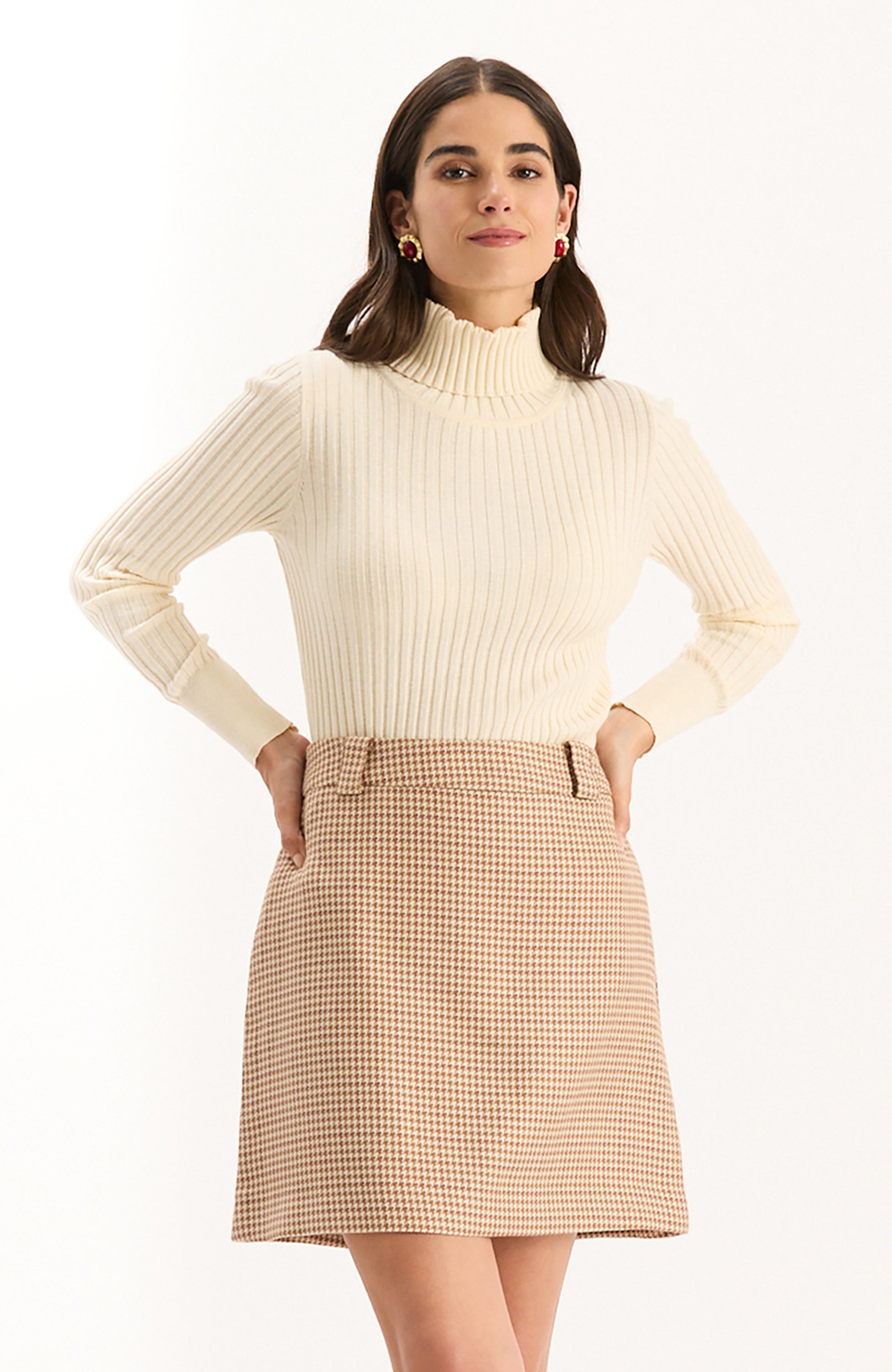 This Twiggy Houndstooth Skirt features a classic mini length with a timeless houndstooth pattern, perfect for adding a chic and polished touch to your wardrobe. Its tailored fit enhances your silhouette, making it an ideal choice for both casual and dressier occasions. Easy to pair with a variety of tops and shoes, this skirt is a versatile staple that brings effortless style to your everyday looks.