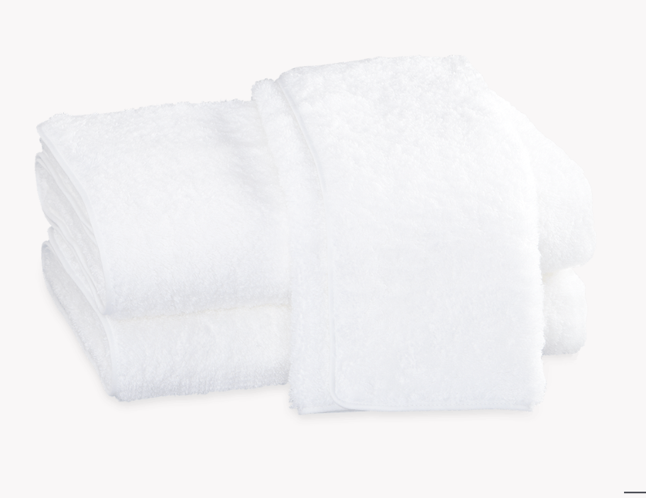 In the Cairo collection, a simple design is simply beautiful. Its pure, plush 100% long-staple cotton terry is unadorned but for a piped edge. You can opt for white trimmed with a pop of color, or colored terry with piping to match.