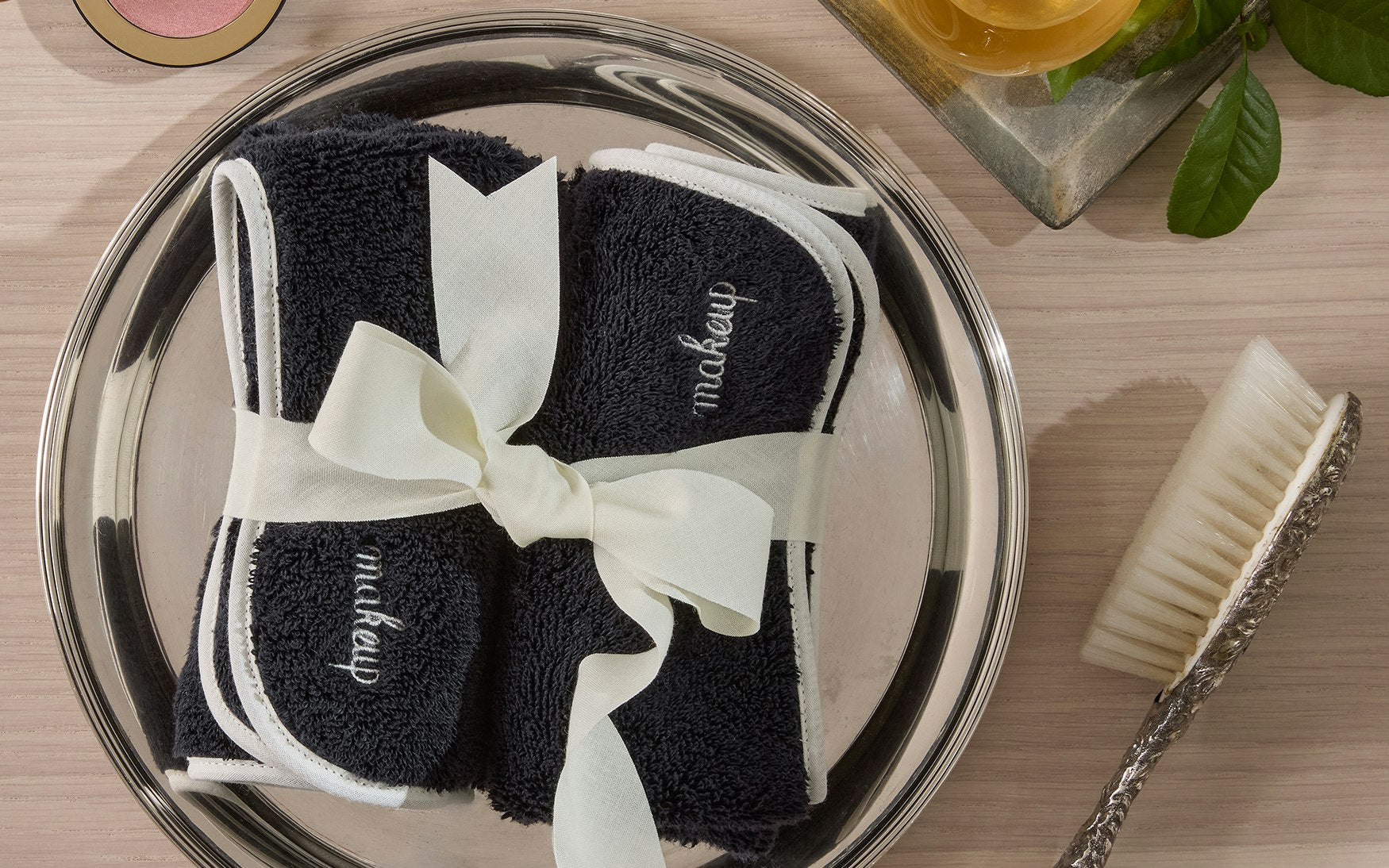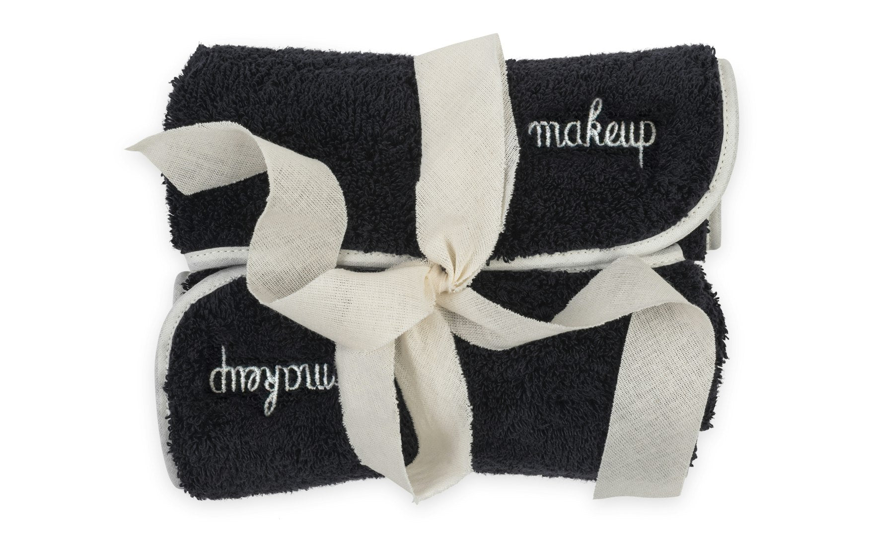 The Giza Makeup Towel is crafted from premium Giza cotton, known for its exceptional softness. Its vivid Carbon color is designed to resist fading from light, chemicals and frequent washing, retaining its rich hue over time. It's embroidered with "makeup" in a custom font.