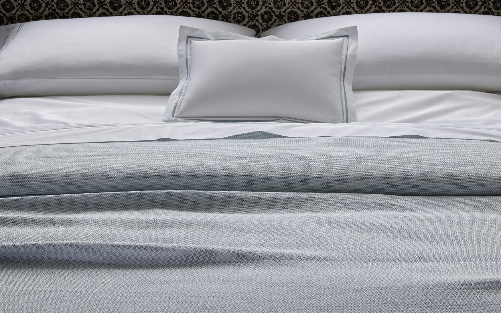 Costa Mesa’s heavy weight and soft knitted texture offer a warm, substantial layer for the bed.