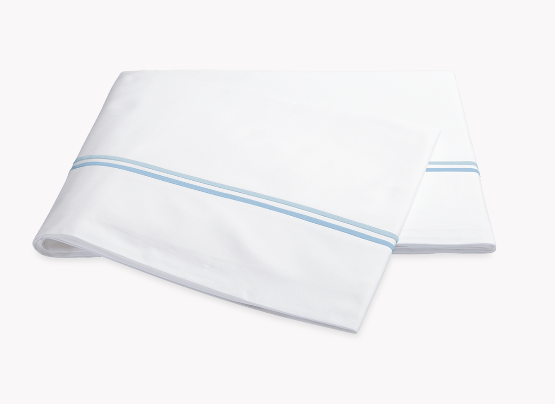 350 thread count Sierra sheeting is accented with a pair of crisp lines of satin stitch embroidery in colors from subtle to cheerful. Essex brings a smart, European hotel feel and modern, elegant air to the bedroom.