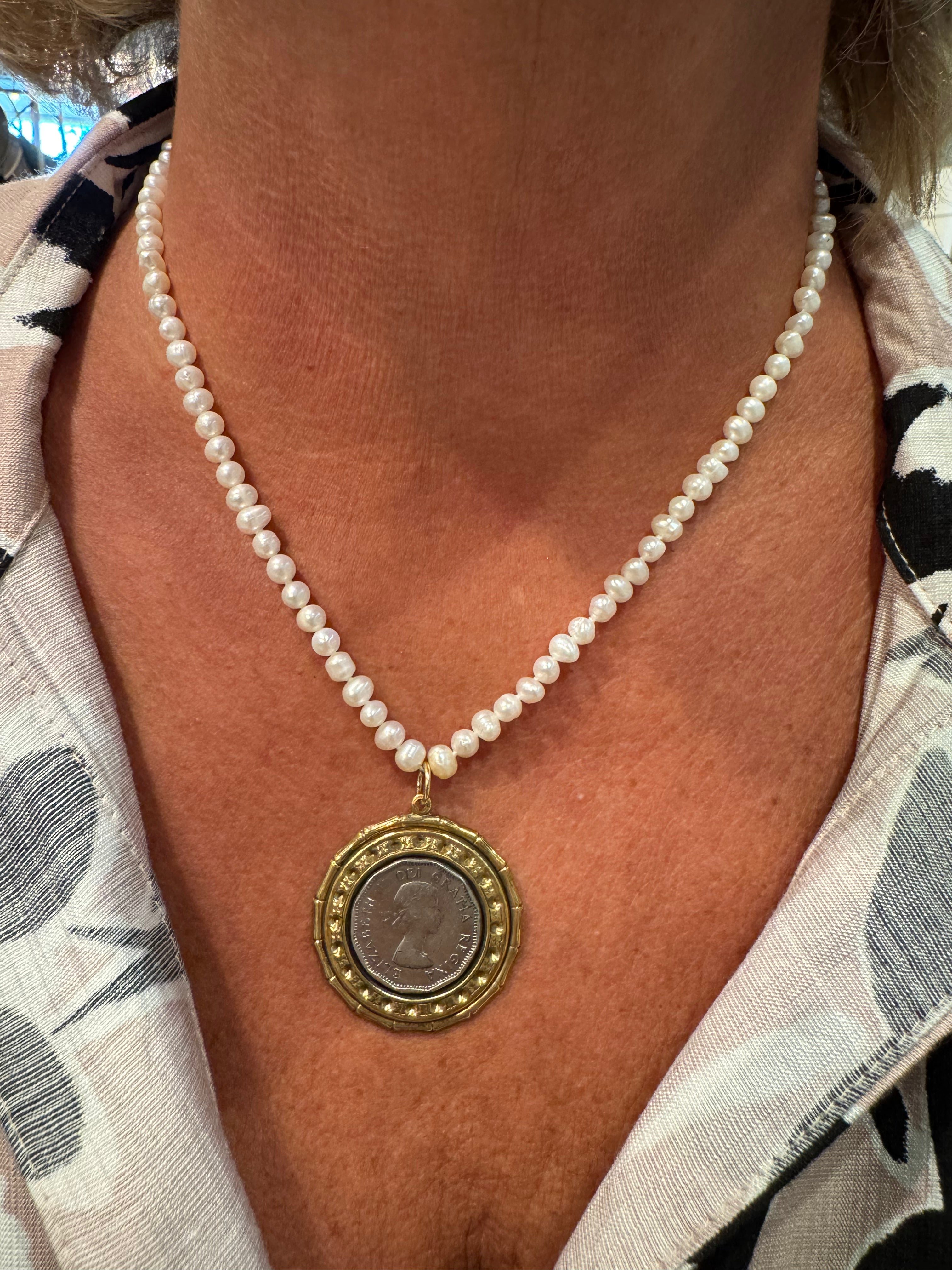 One of a Kind Coin & Pearl Chain Necklace