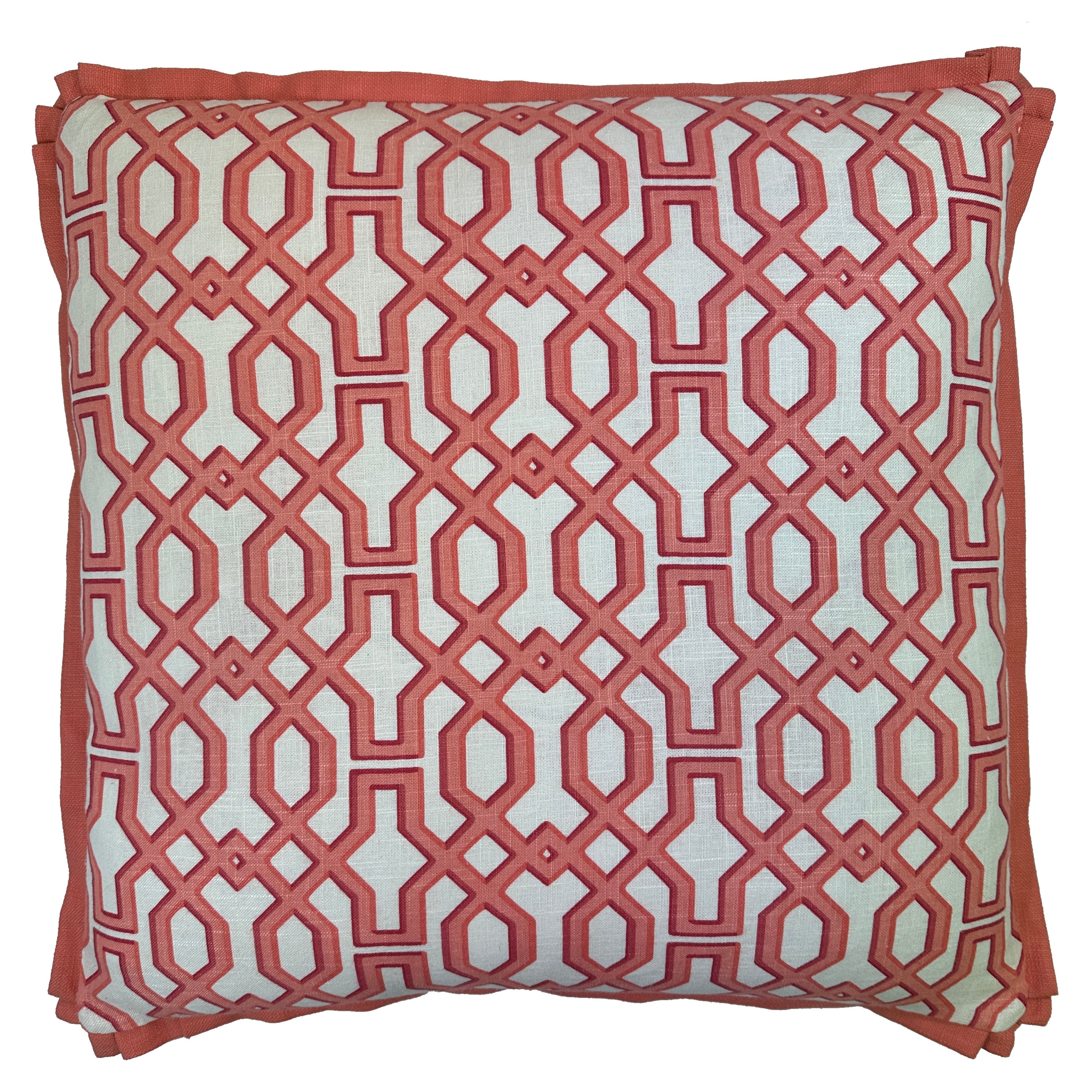 Rue Coral Pillow features a striking cupcake flange design with coral detailing against a crisp white linen back. This luxurious pillow is filled with premium feather down for exceptional comfort and support. The secure zipper closure allows for easy care and maintenance. Dry clean only to preserve the quality of the linen and flange detailing.