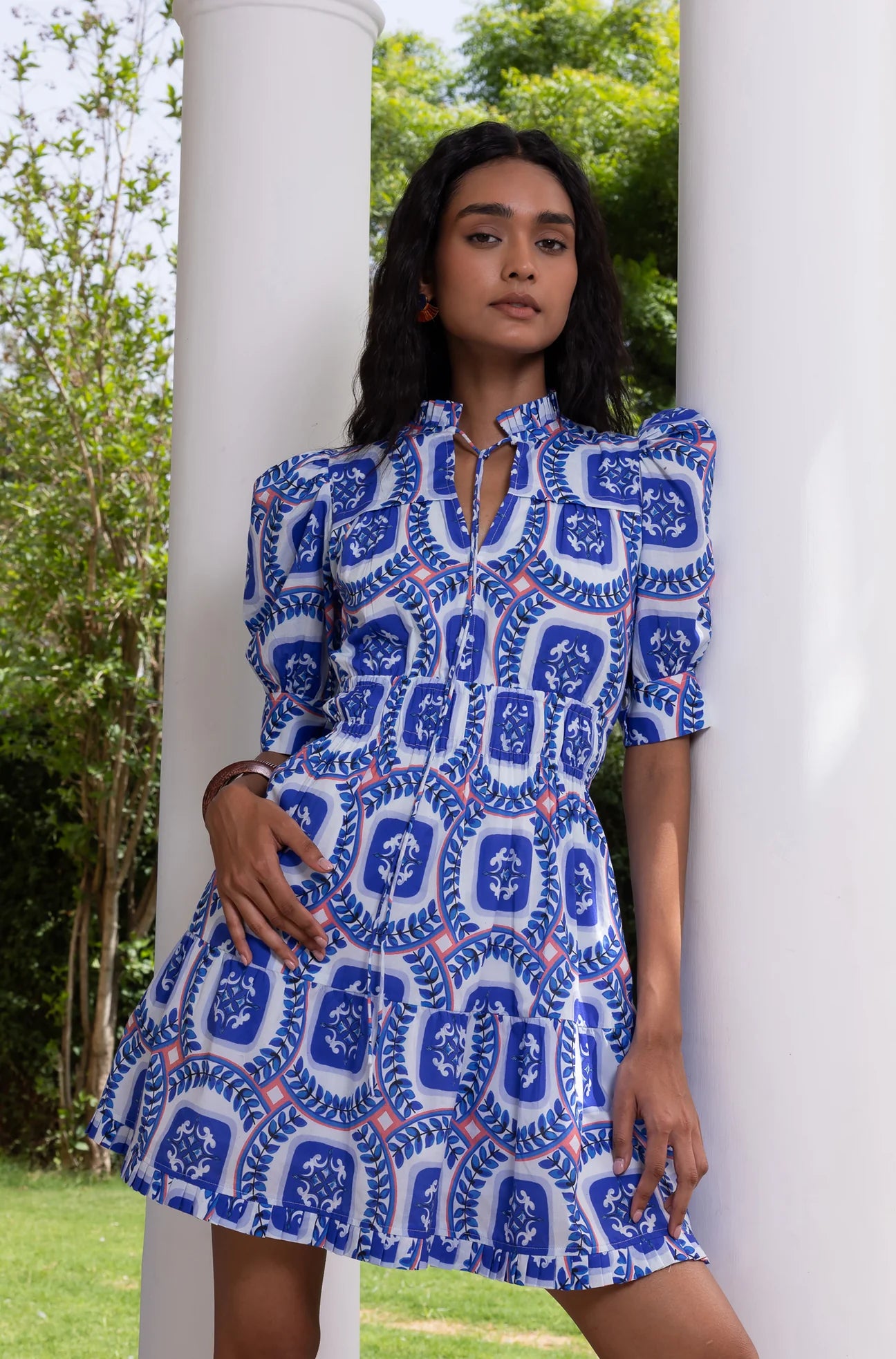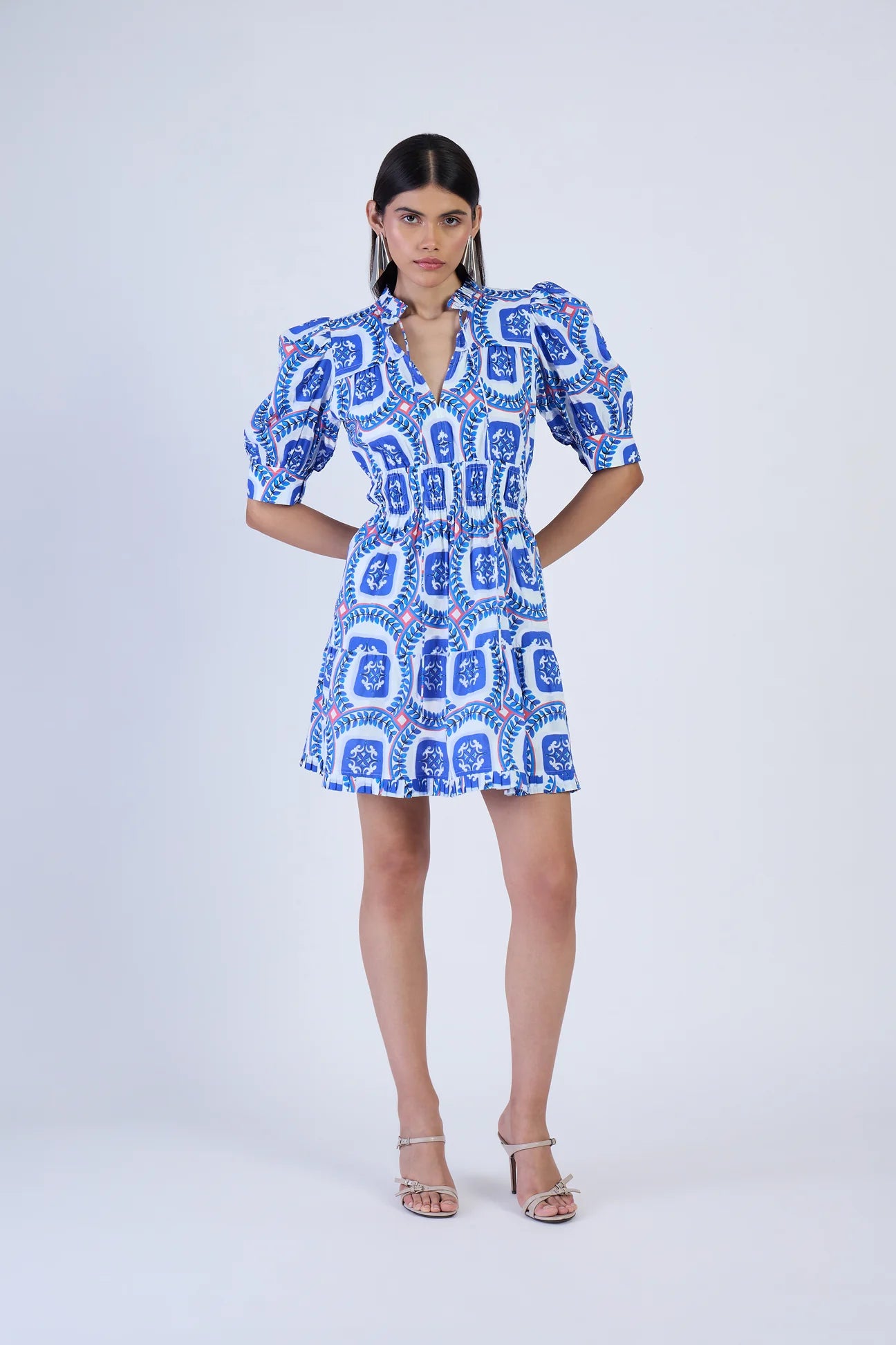 The Alice is the perfect mini dress for sun-filled days and tropical nights. The pleats, smocking details, deep V-neck and flattering shape make Alice a true showstopper. Alice is made from airy cotton voile soft, breathable, and effortlessly breezy. The print’s geometric, circular artwork echoes the tiled floors of old Sicilian villas. A fresh take on Mediterranean tradition, Palermo captures the everyday beauty of southern Italy: faded stone, sea breeze, and sunlit interiors.