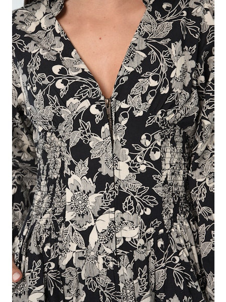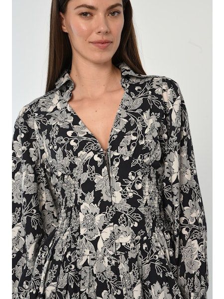 The Gia Mini Dress combines effortless style with practical design. This long sleeve mini dress features a convenient zip-up front for easy layering and adjustable styling throughout the day. The smocking detail at the waist creates a flattering silhouette while adding visual interest to the piece. Perfect for transitioning from casual outings to evening plans, this versatile dress works beautifully on its own or layered under jackets and cardigans for cooler weather.